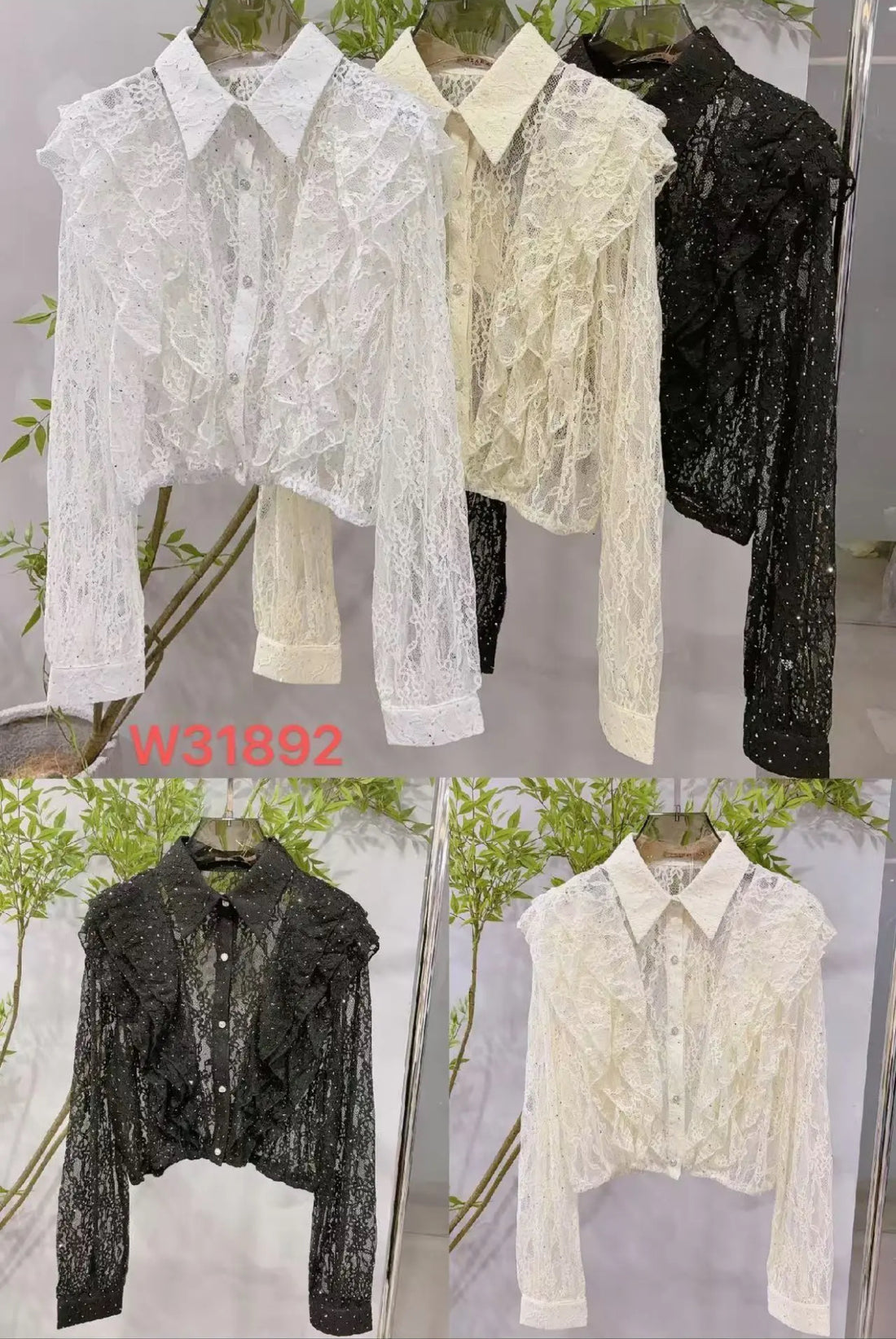 Blusa in pizzo con scollo e lacci sulla manica - R.a. Boutique