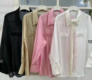 Blusa Elegante con gioiello e Maniche Svasate - R.a. Boutique