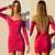 Fuchsiafarbenes Kleid mit Locken und langen Ärmeln