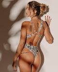 Body in fantasia pitonata con coppe estraibili, schiena incrociata e slip vita alta