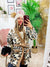 Camen Stoffmantel mit Camel und weißer Stickerei auf der Vorderseite, alles Camel auf der Rückseite und Gürtel inklusive.