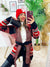 Strickjacke mit Fransen Rot Schwarz Inklusive Gürtel.