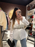 Il gilet blazer perfetto per creare outfit eleganti e moderni. Il taglio sartoriale con spalline strutturate valorizza la figura mentre il design senza maniche lo rende ideale anche per la mezza stagione.