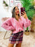 Pullover mit Wellen und rosa Schmuckknöpfen