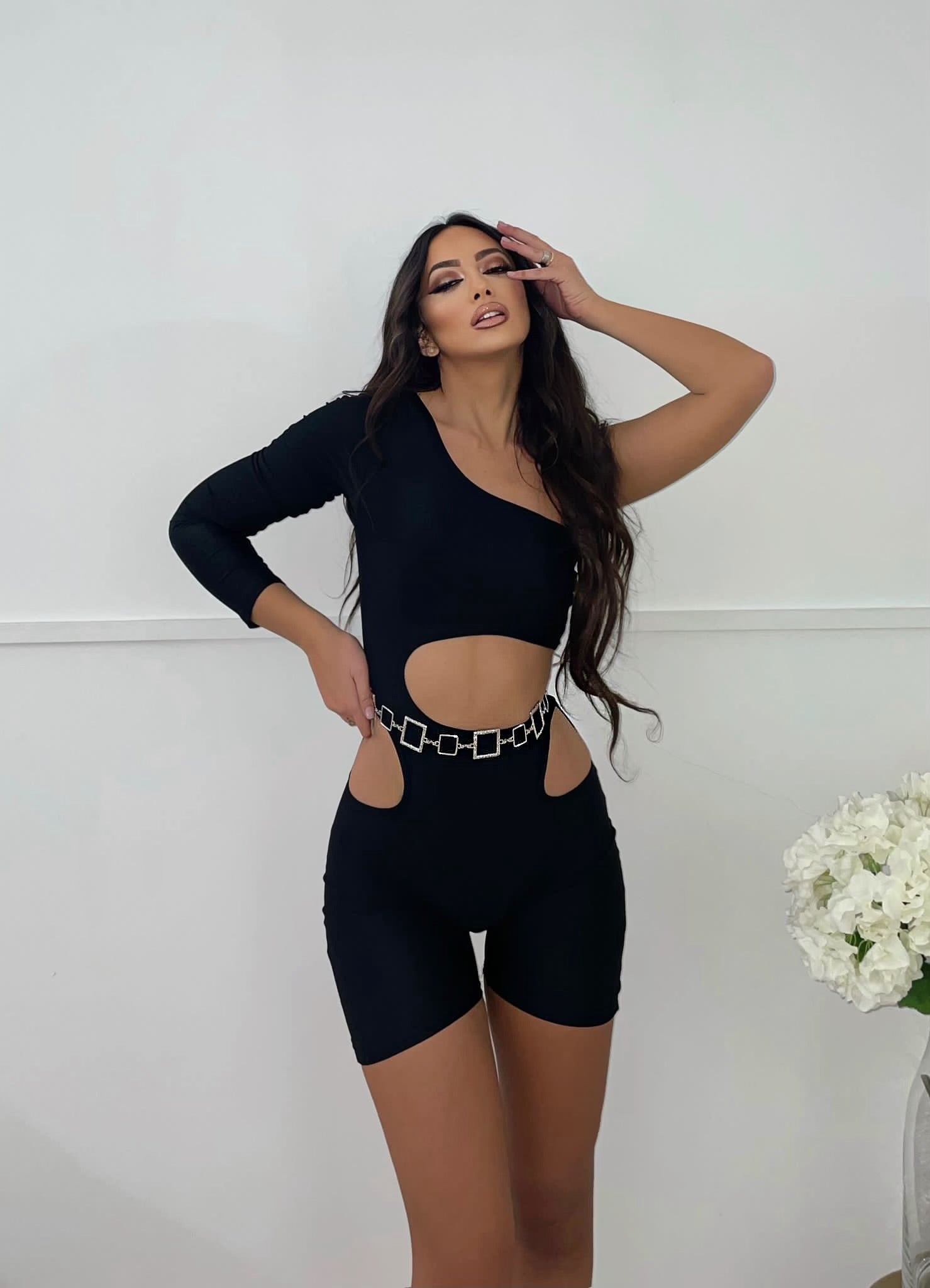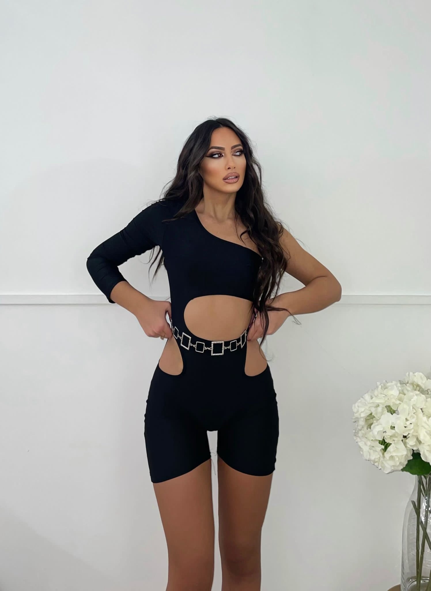 Tutina in lycra aderente e elasticizzato con fori in dettaglio