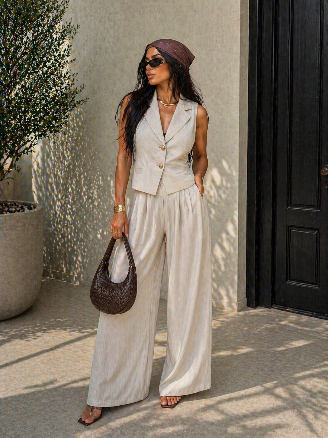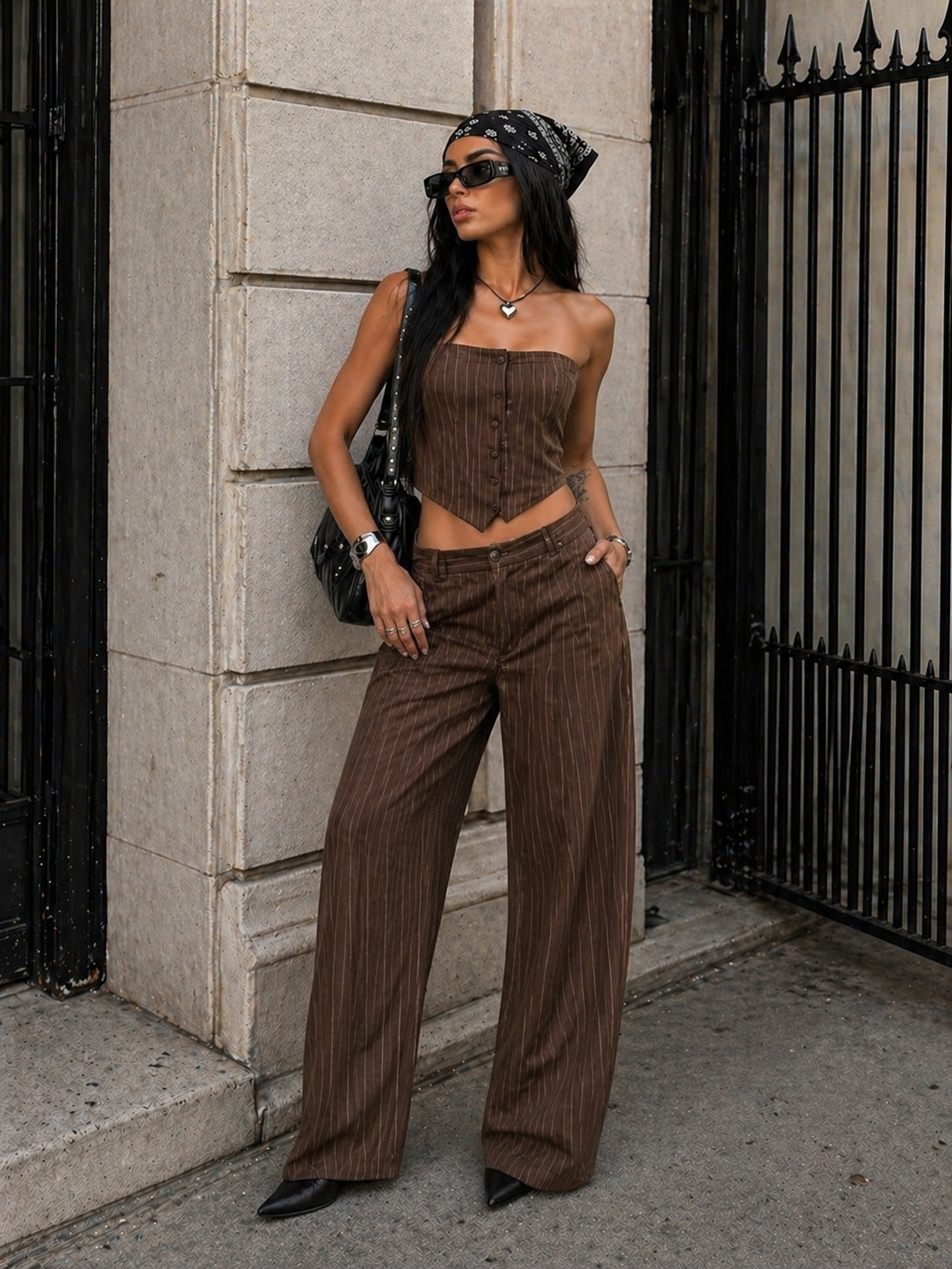 Completo Denim Dark Brown – Giacca Crop & Pantalone Flare