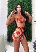 Bikini tre pezzi, top con coppe mutanda sgambata e compresa gonna tono su tono.