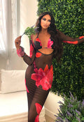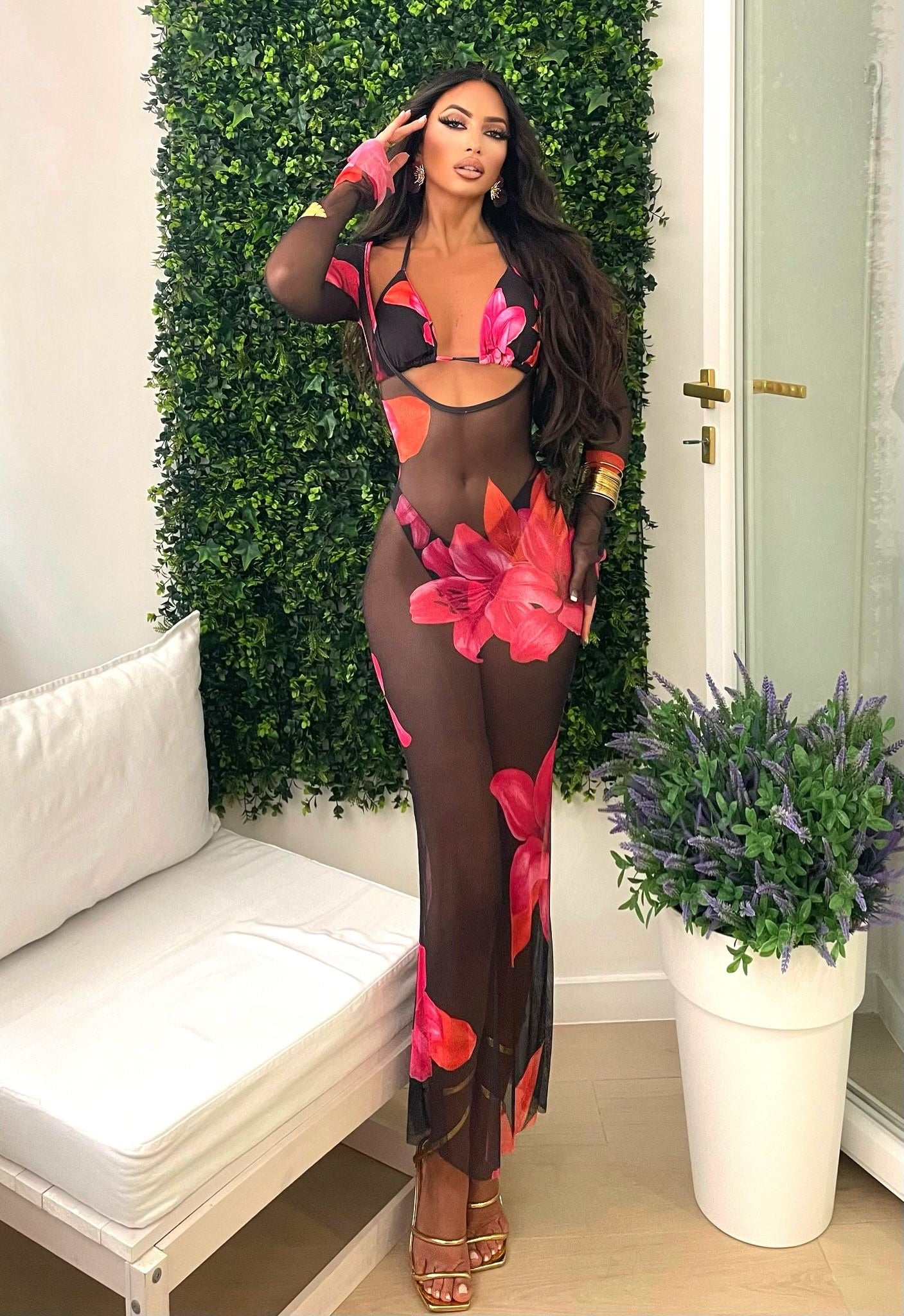 Bikini tre pezzi, top con coppe mutande sgambate e compreso abito in velo tono su tono.