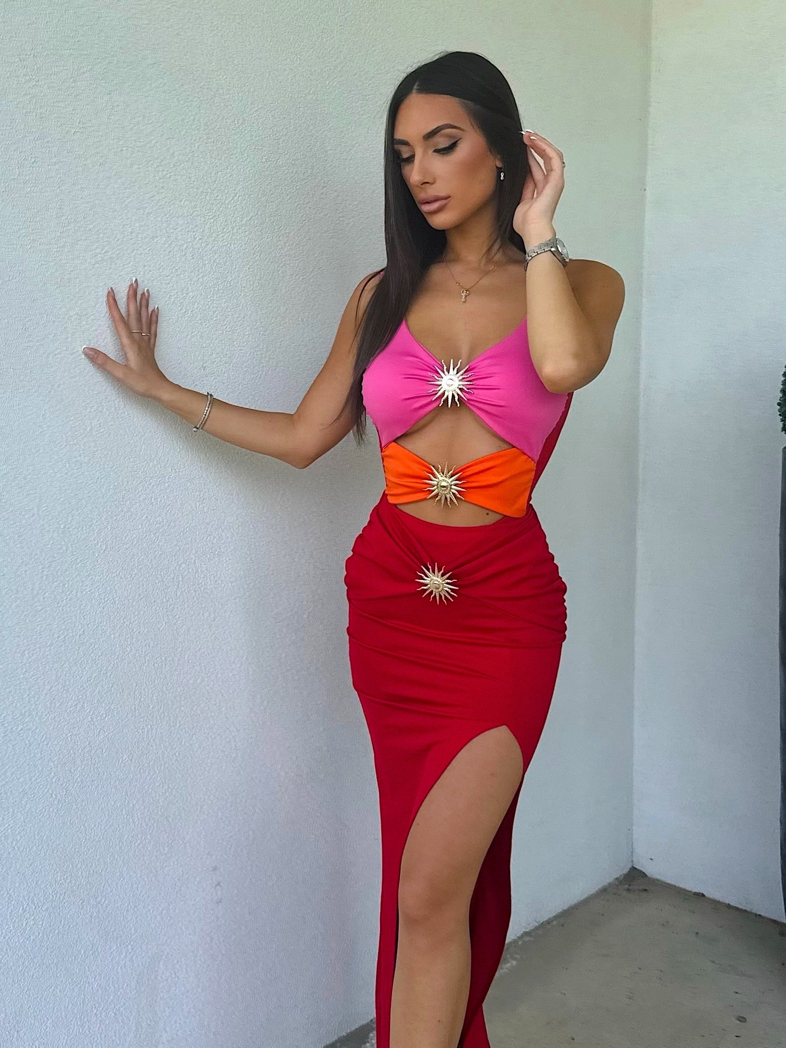 Bikini tre pezzi con pareo e mutanda leggermente sgambata.