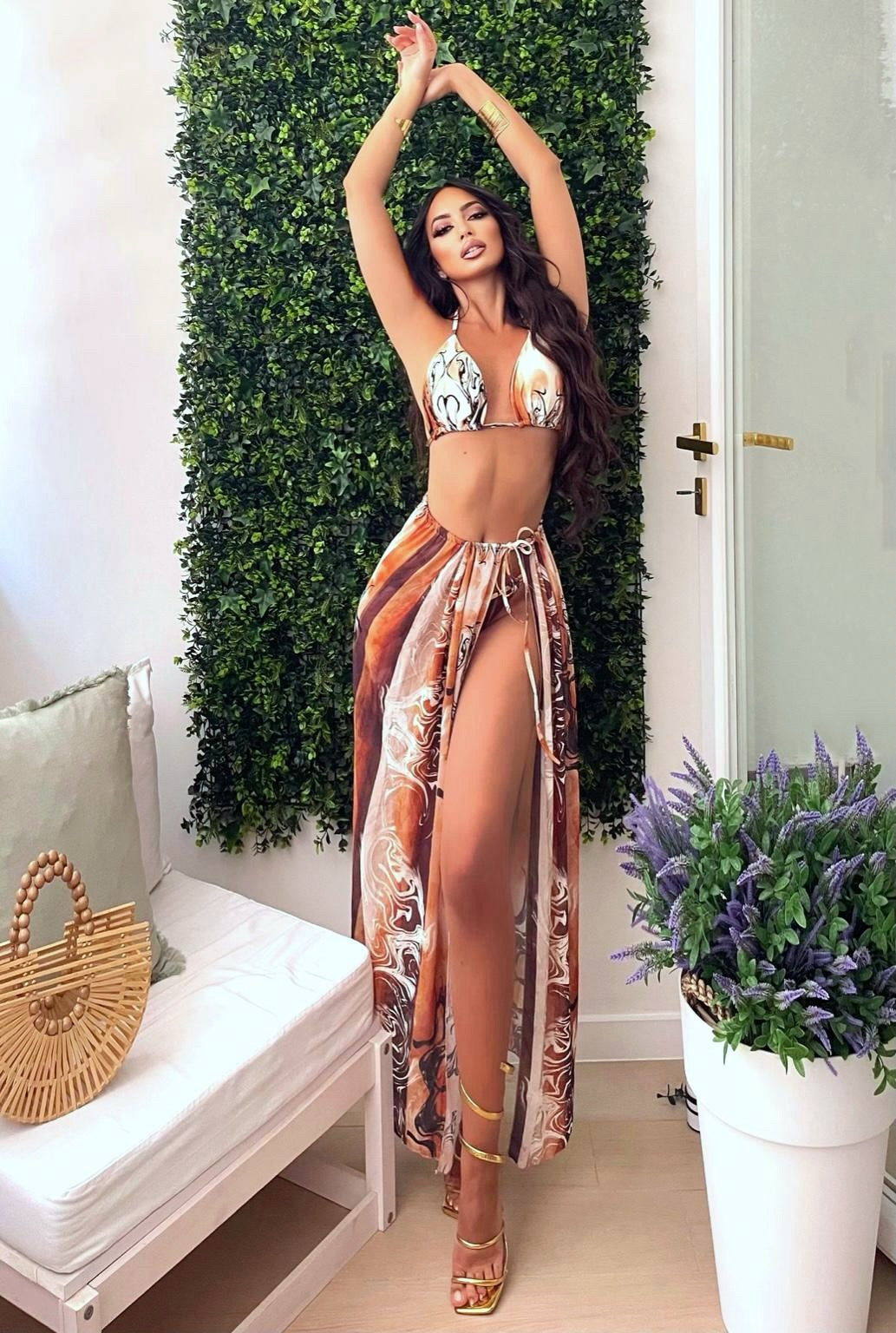 Bikini tre pezzi etnico con gonna