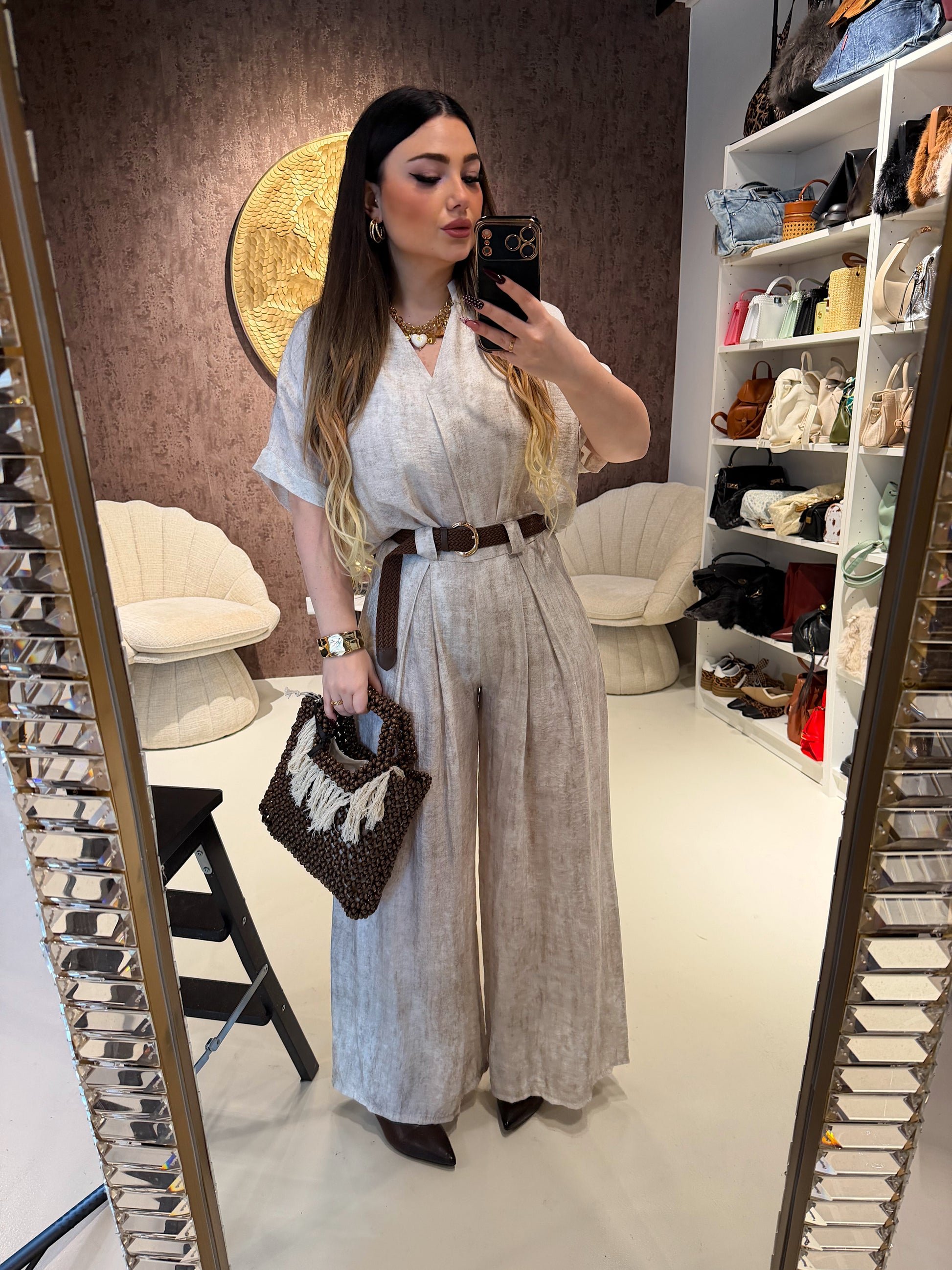 Completo camicia e pantalone stone con cintura