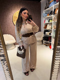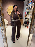 Il completo camicia pantalone soft è realizzato in un tessuto morbido composto da mega viscosa e metà poliestere, garantendo comfort e traspirabilità. I pantaloni elasticizzati offrono una vestibilità ottimale, favorendo la libertà di movimento, ideale per un utilizzo quotidiano o occasionale.