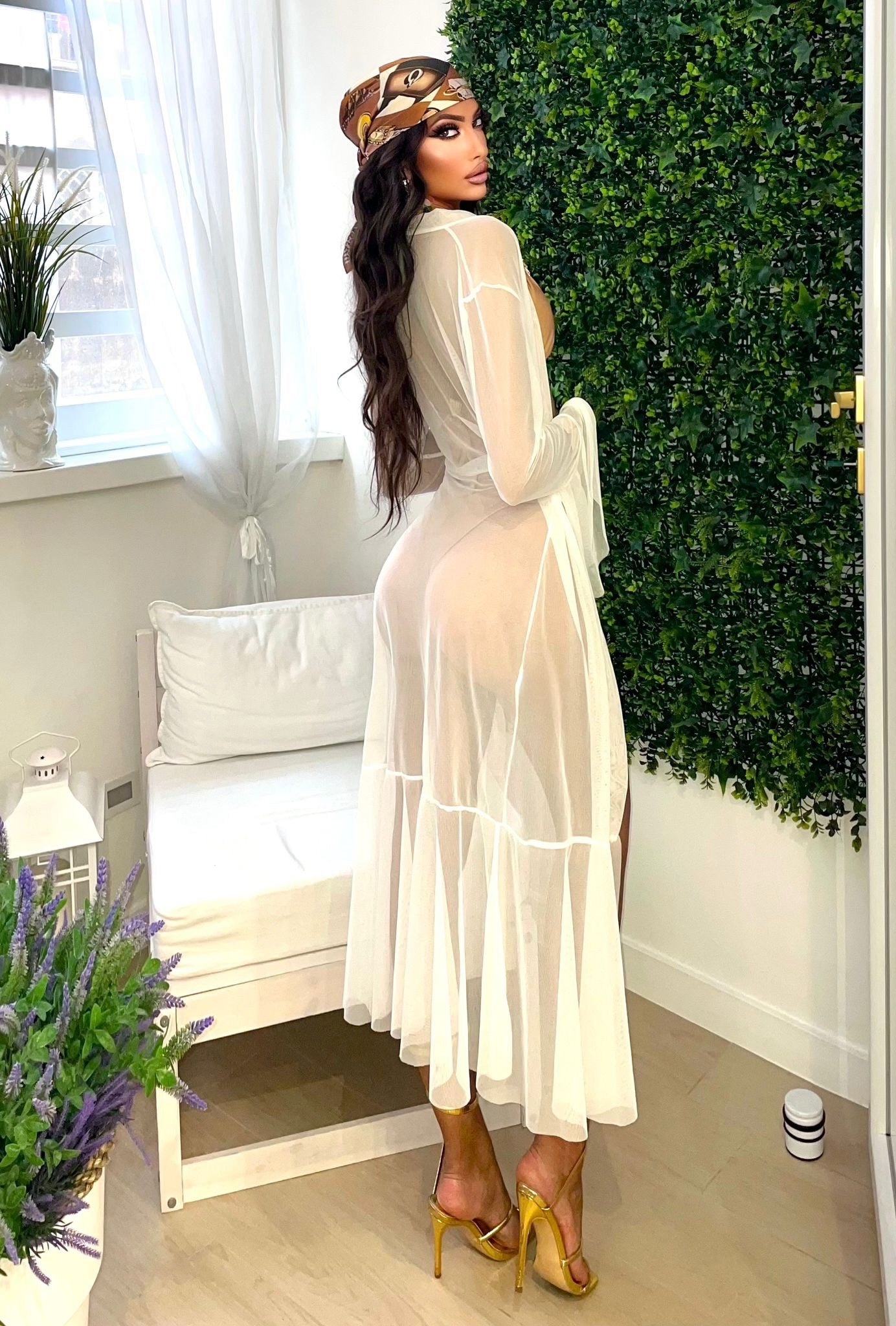 Copricostume in velo con cintura inclusa in velo