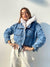 Denim jacket with fur inside and on the hood. Elastic at the bottom.