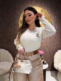Maglia in morbido tessuto teddy con lavorazione a trecce che conferisce texture e profondità al capo. Scollo a V elegante e maniche lunghe per un'estezione versatile e raffinata. Il dettaglio teddy sulla superficie crea un effetto tattile piacevole, perfetto per le stagioni più fredde. Un capo essenziale che combina comfort e stile, ideale da indossare sia in contesti casual che semi-formali. La qualità costruttiva garantisce durabilità nel tempo.
