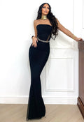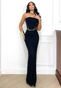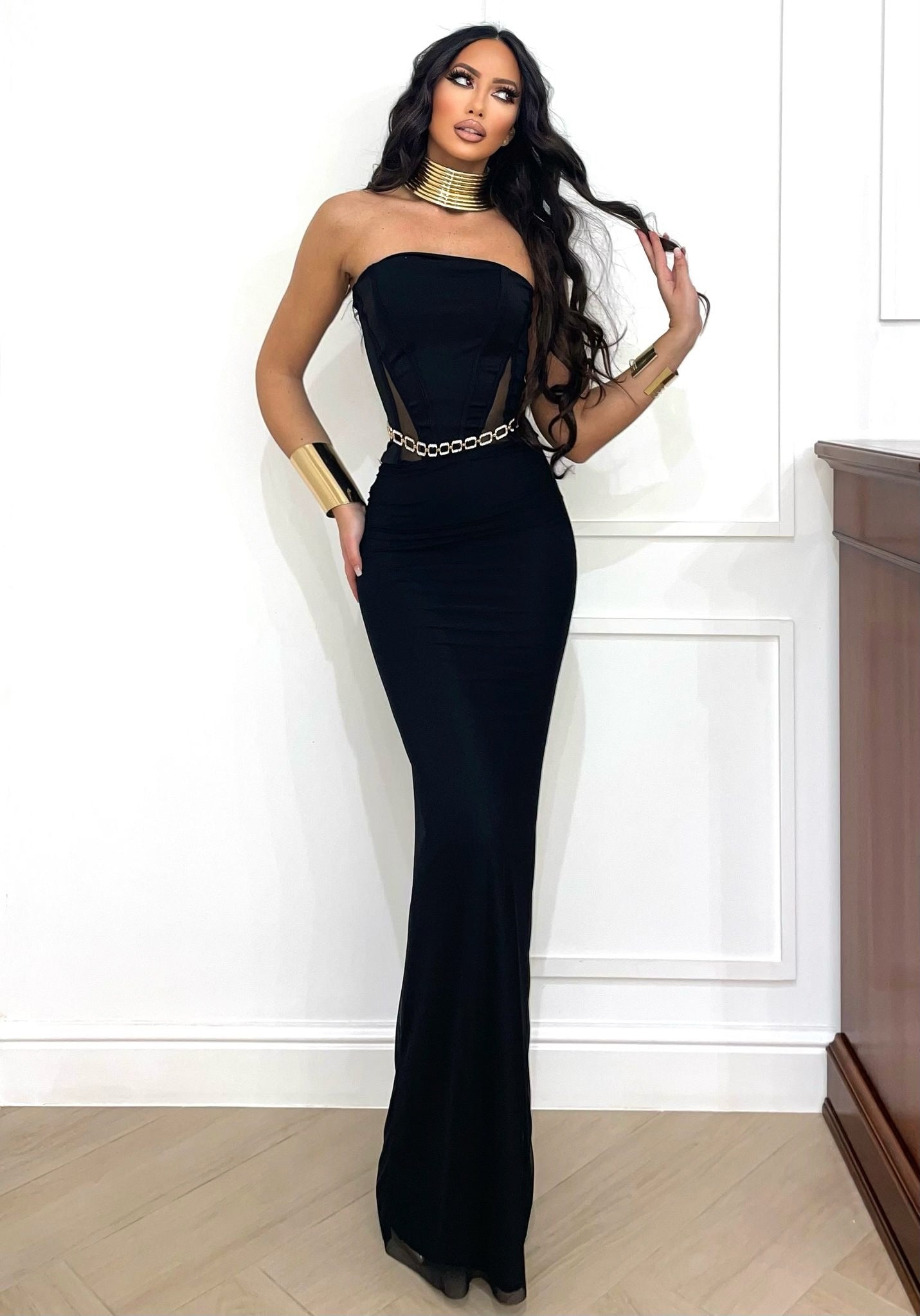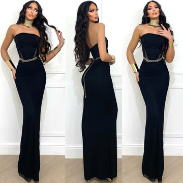 Vestido bandeau de efecto envolvente con detalle de ballenas delanteras. Falda de tul. Tejido ajustado y elástico.