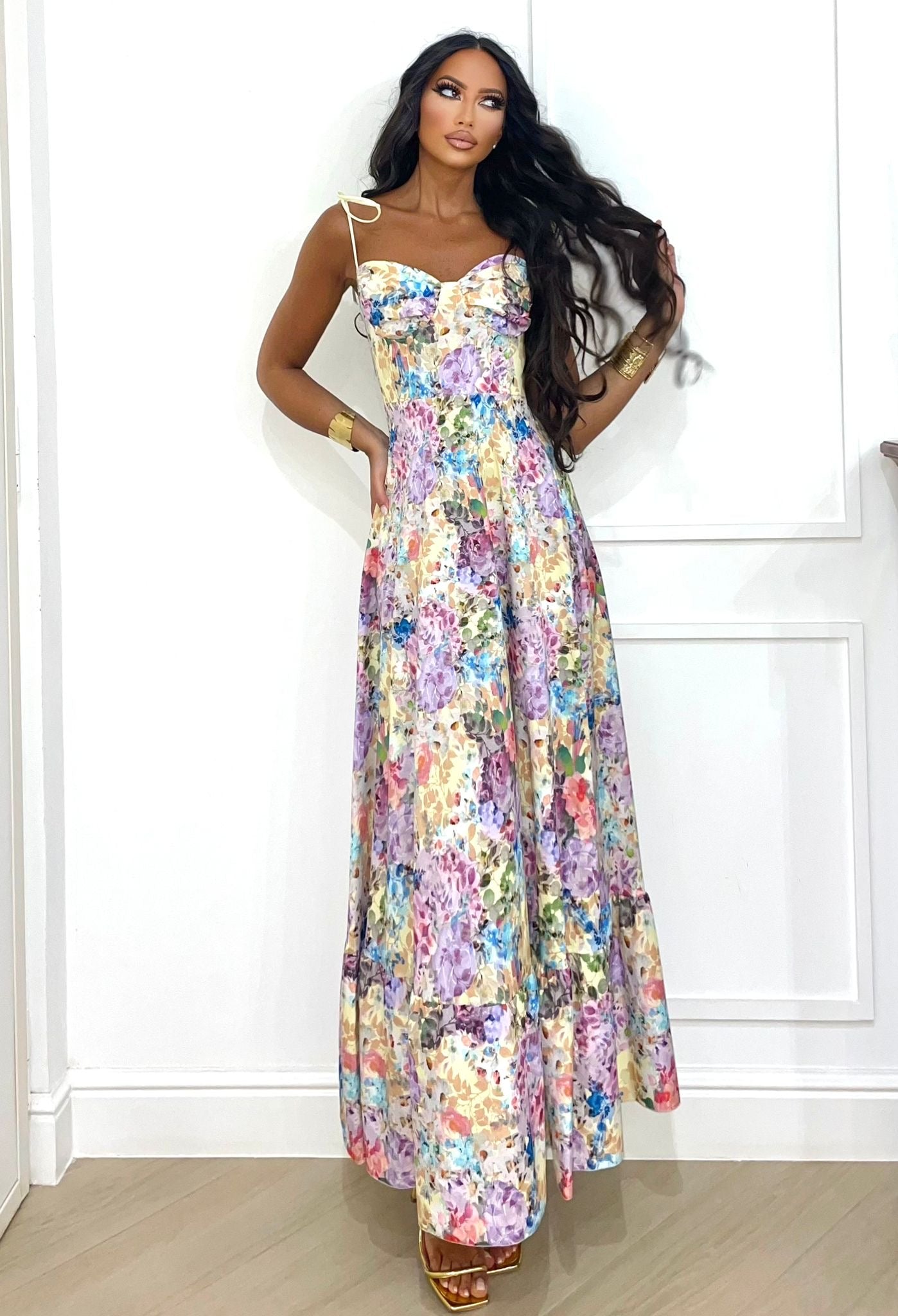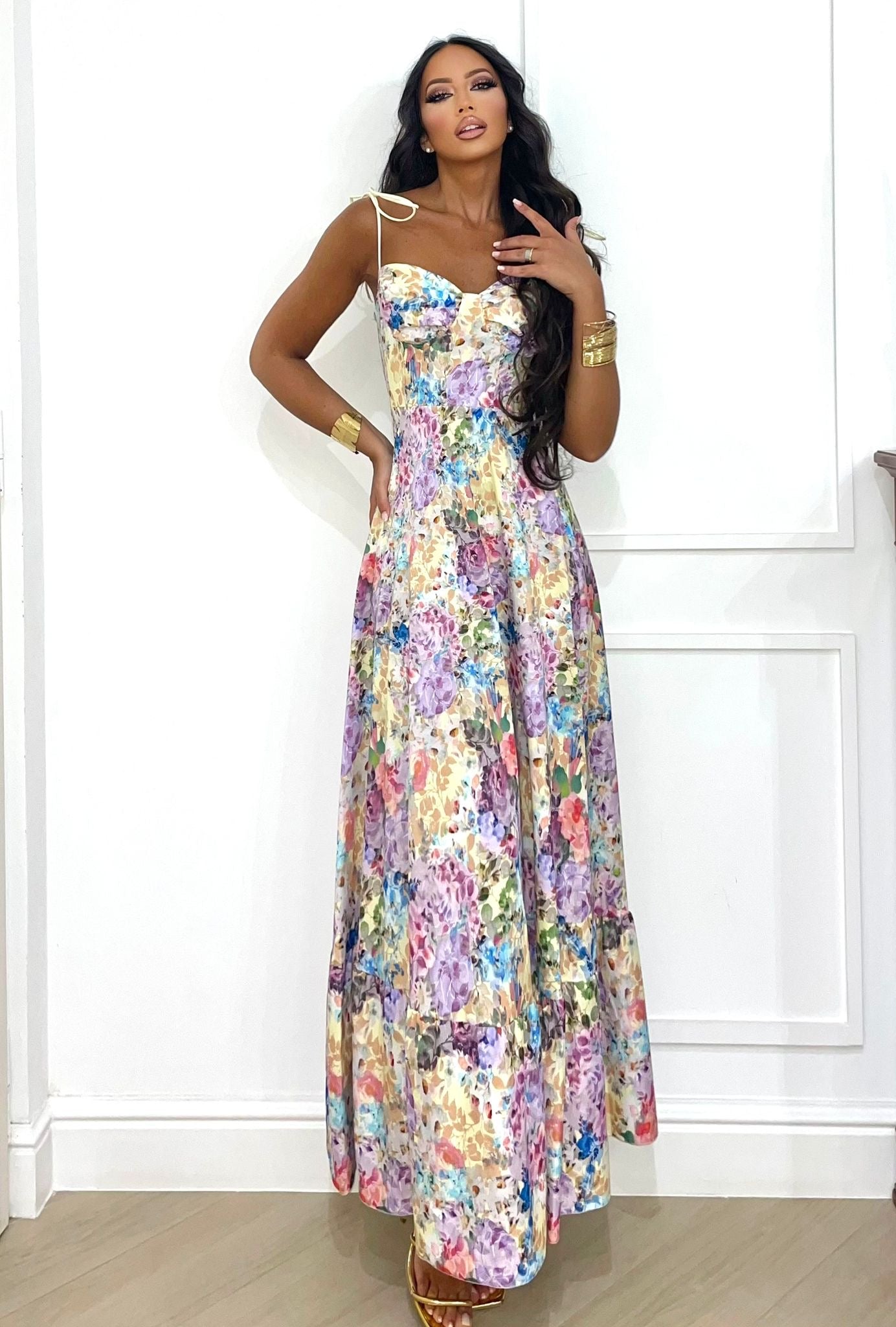 Vestido de tejido ligero sin copas con estampado floral, con encaje