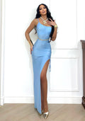 Vestido de un solo hombro en papel de azúcar con fruncido