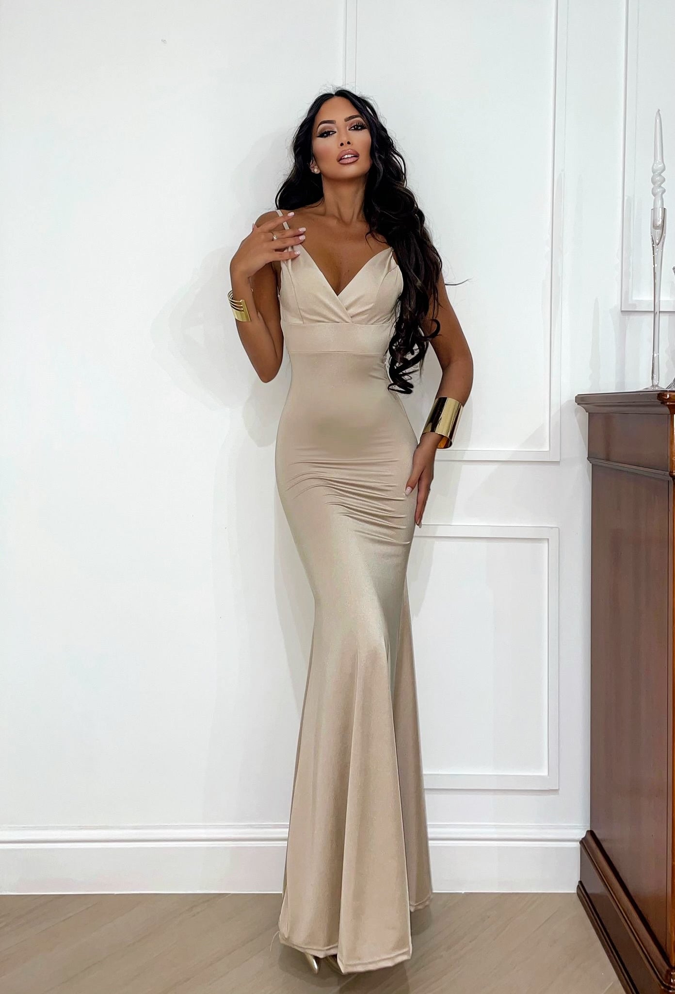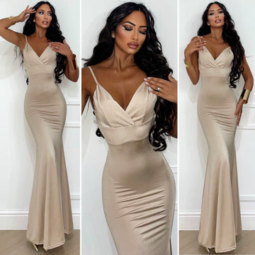 Vestido sirena tirantes beige