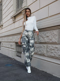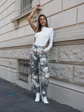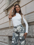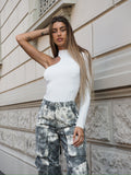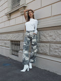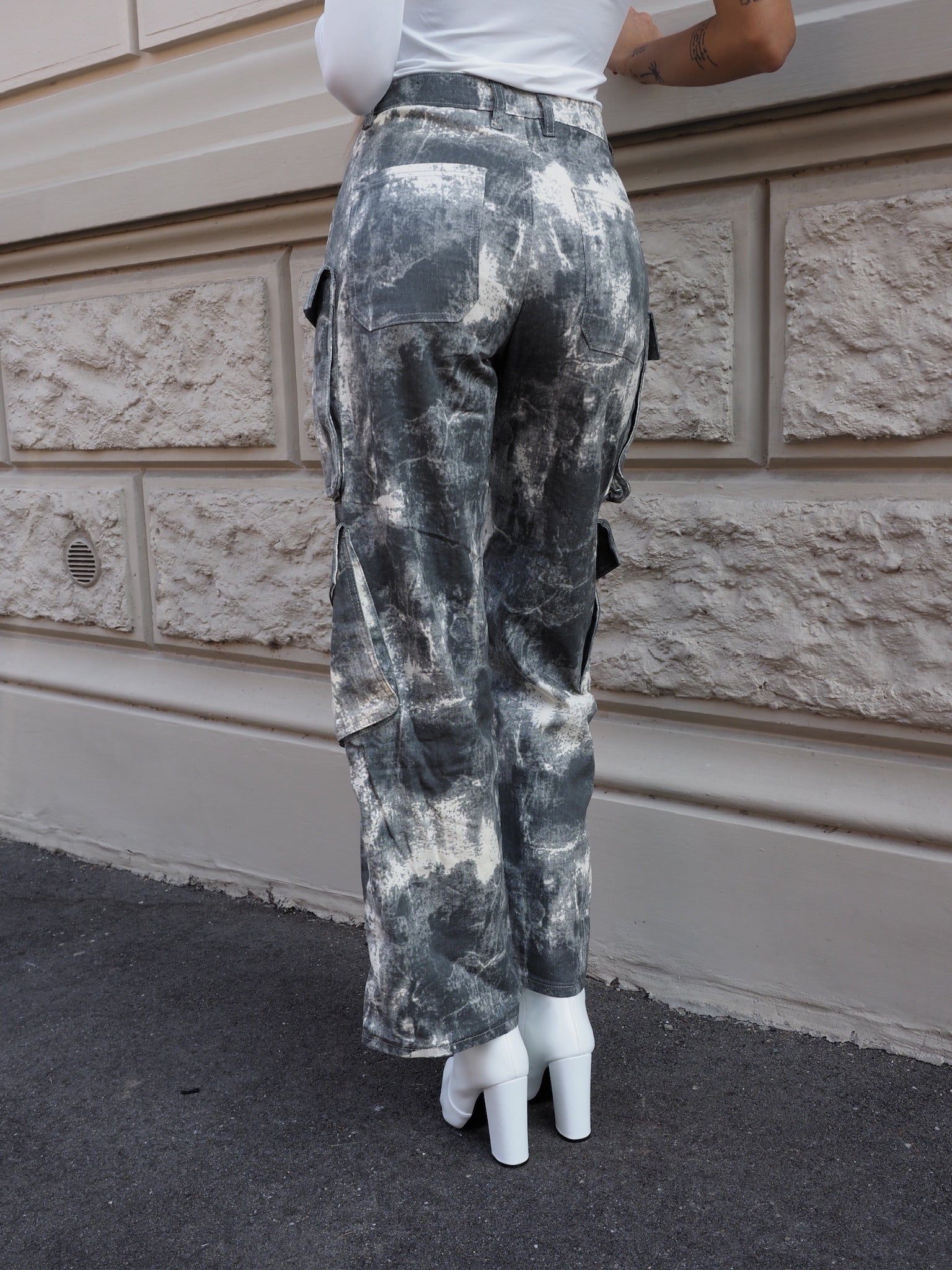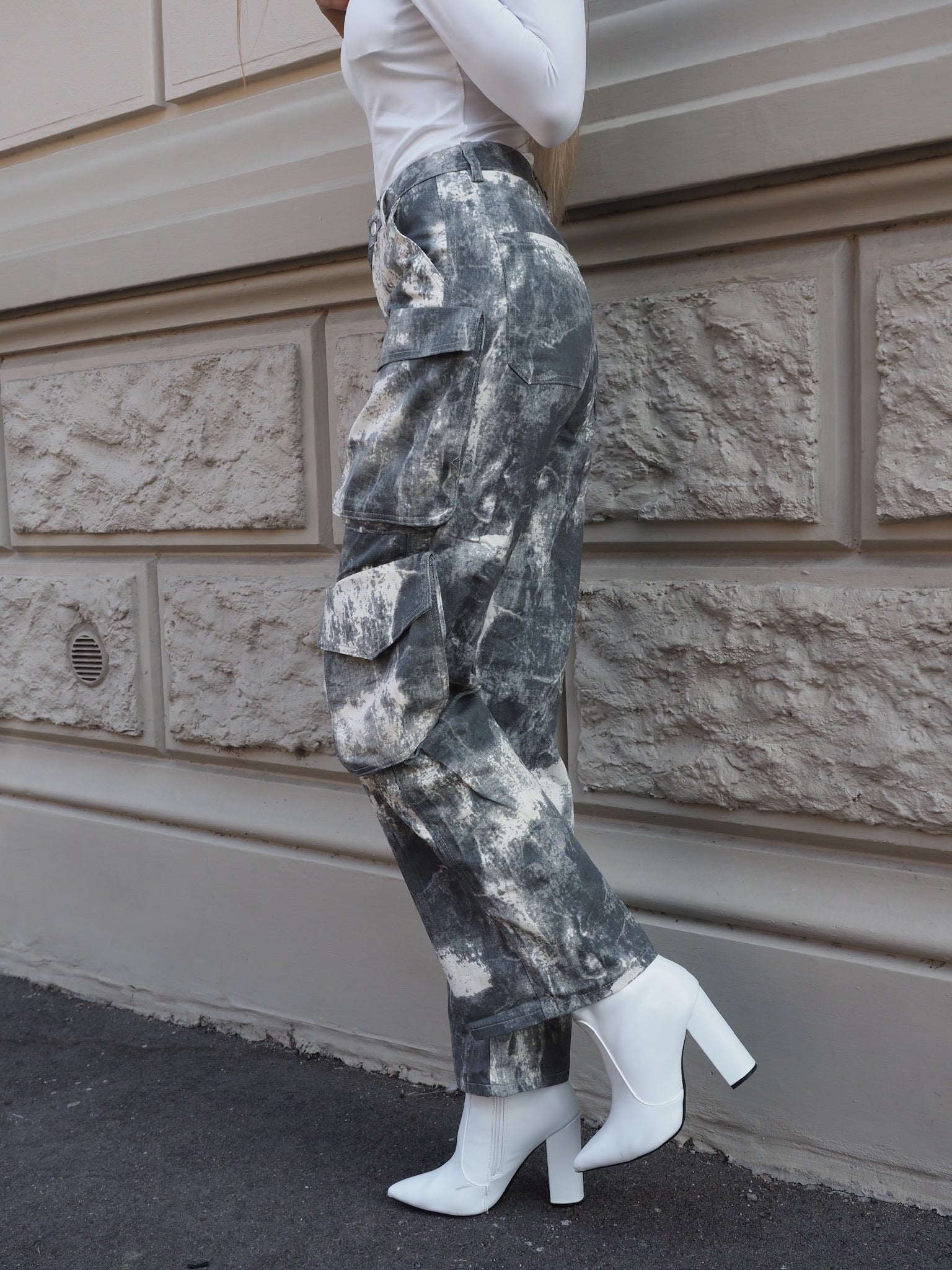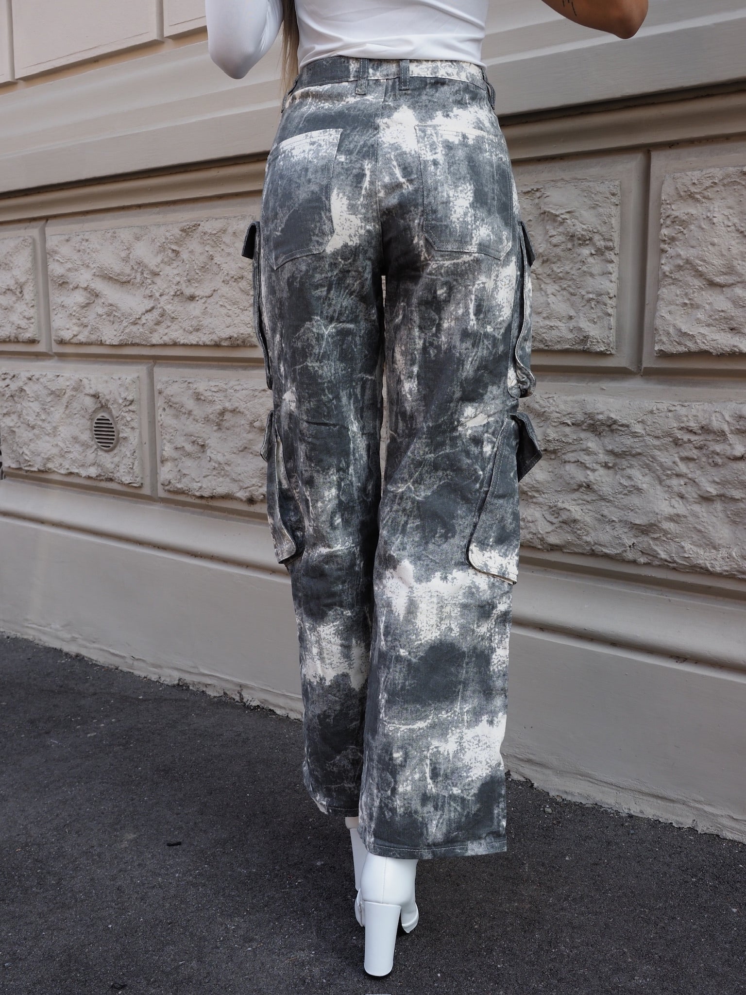 Cargo en tejido no elástico. Maxi bolsillos y pernera ancha.
