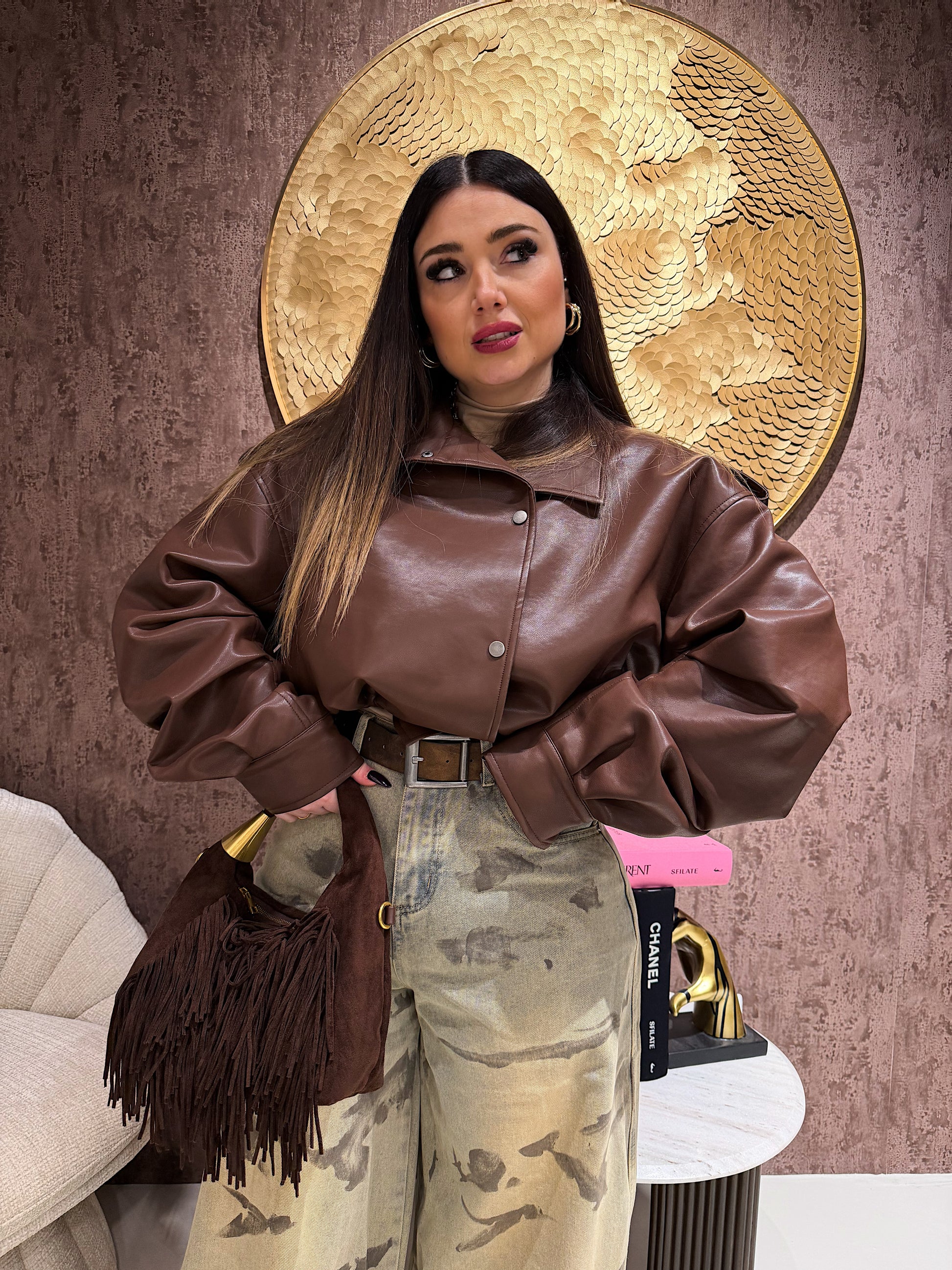 Il Chiodo Cropped Urban Leather è il capo must have di stagione: moderno, grintoso e super versatile. Realizzato in ecopelle morbida effetto premium, ha un design cropped e oversize che valorizza ogni outfit, dal look casual al più elegante.