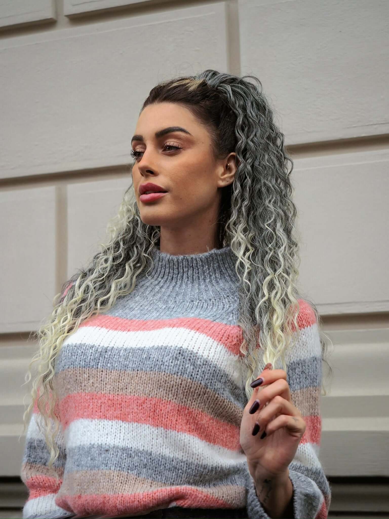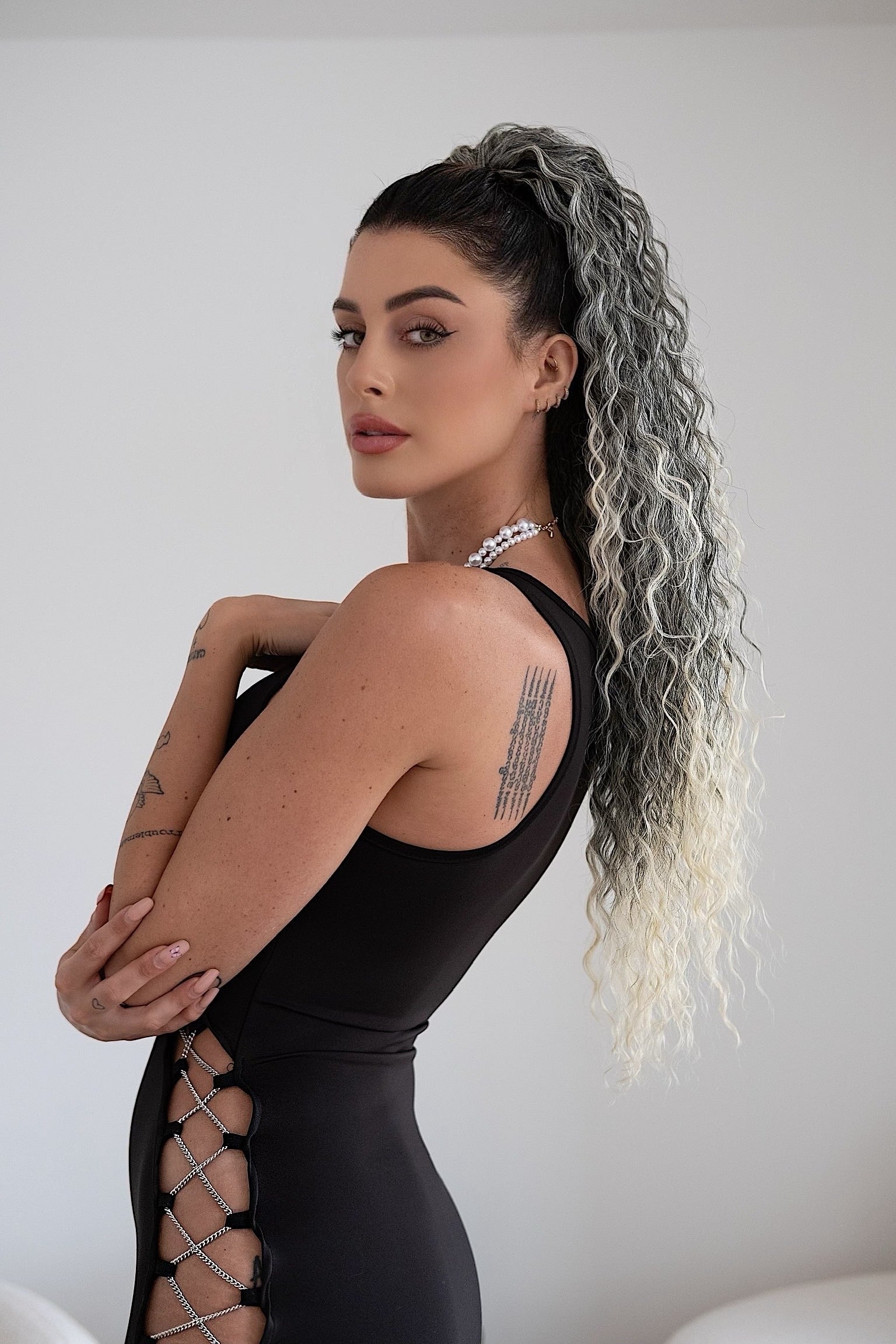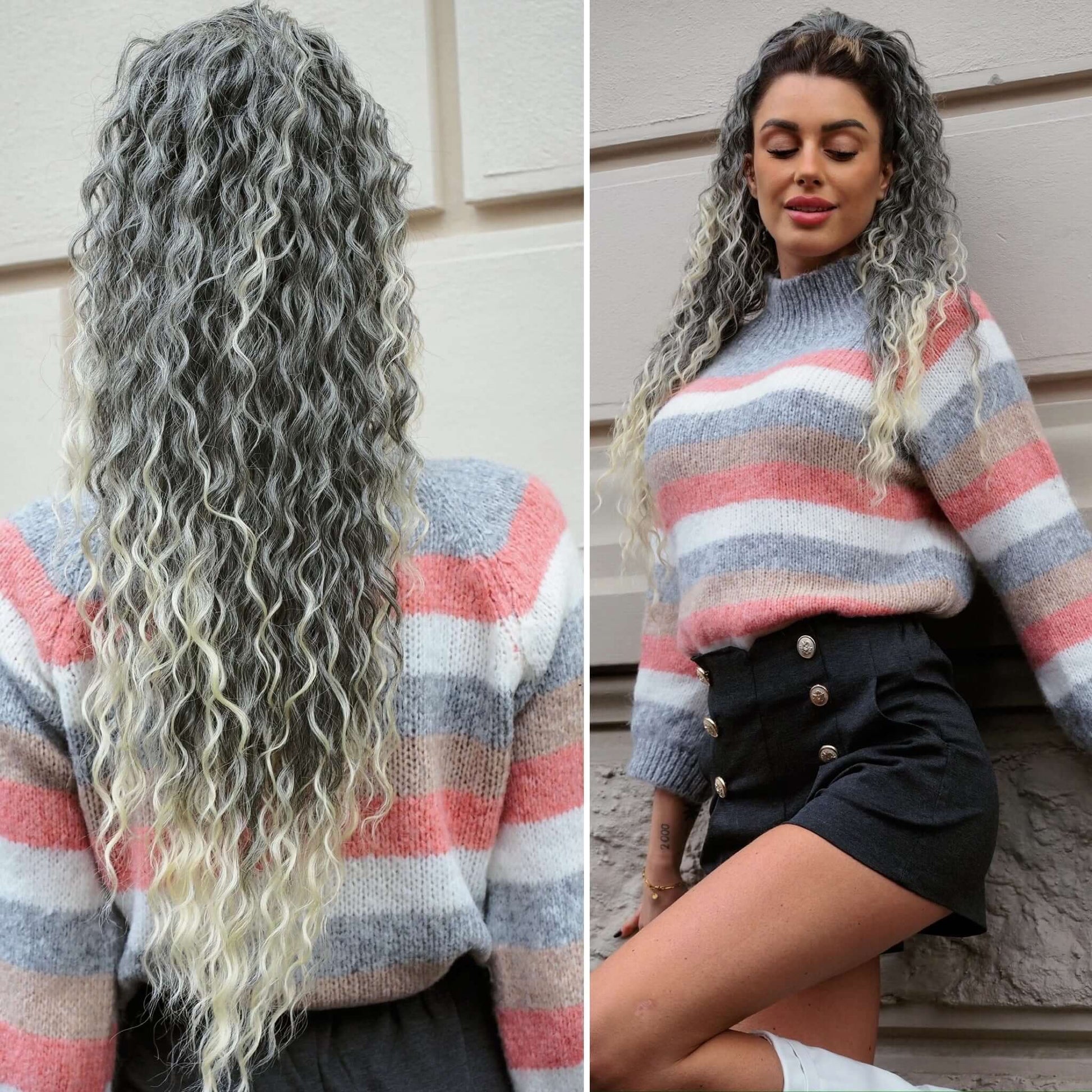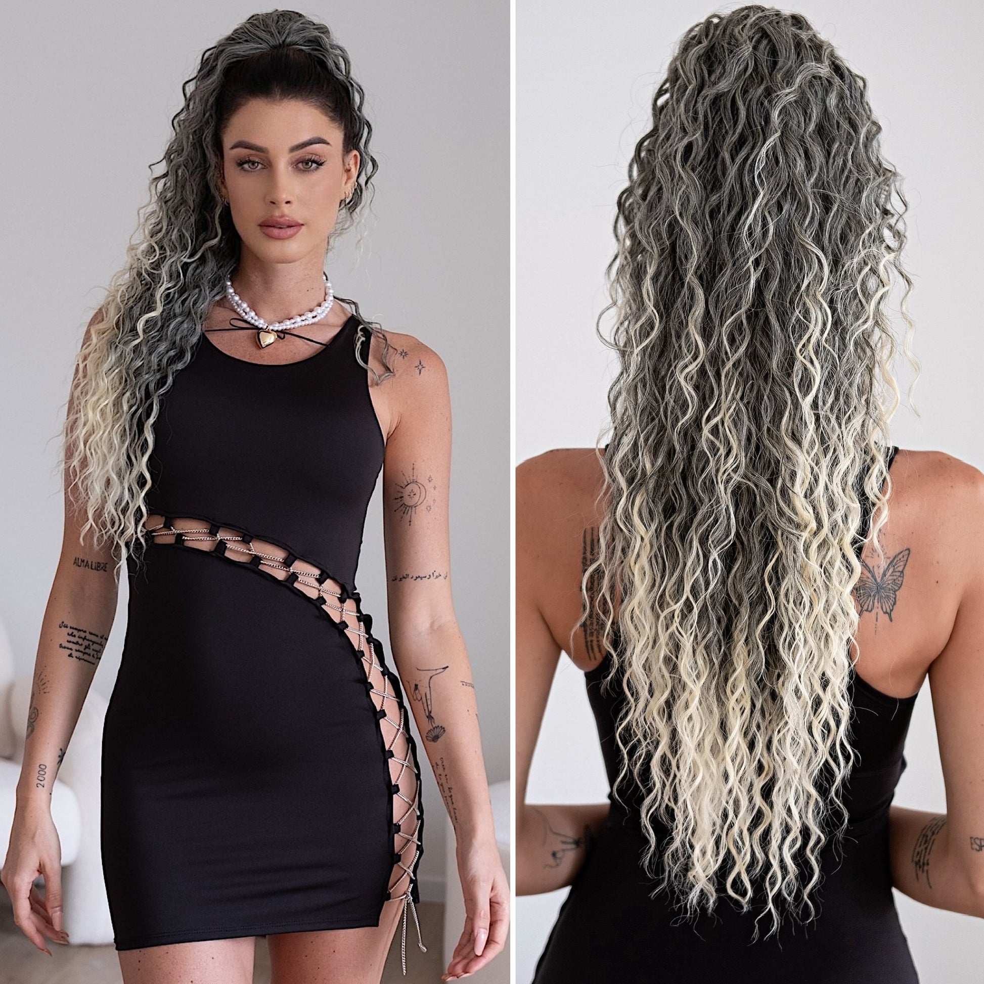Cola rizada #t1b-613 con cordón negro/platino Degradè