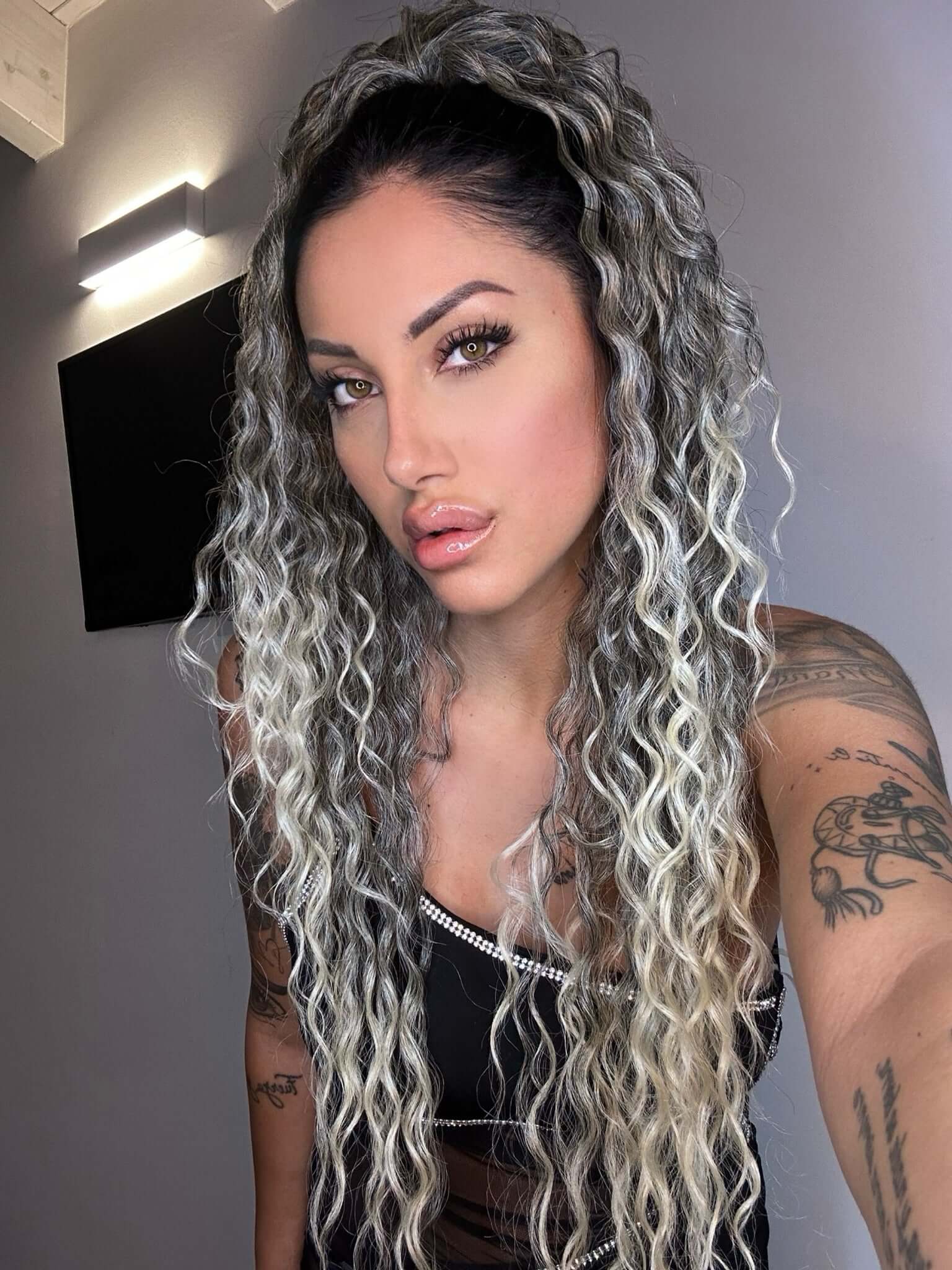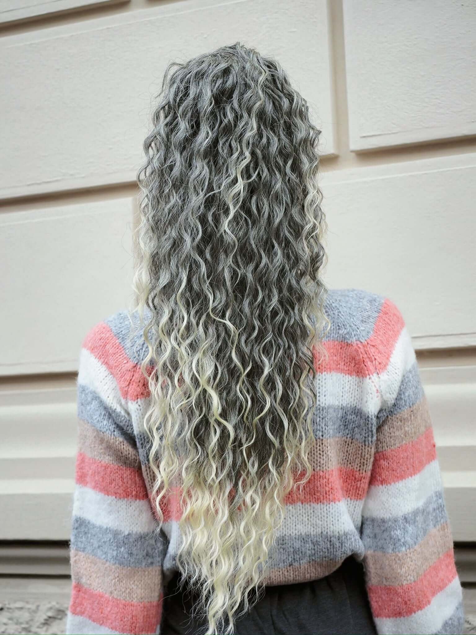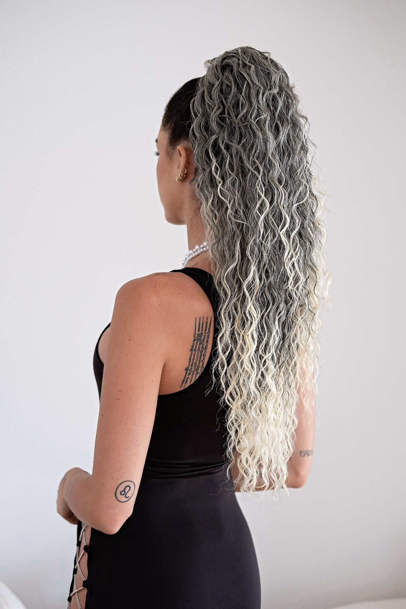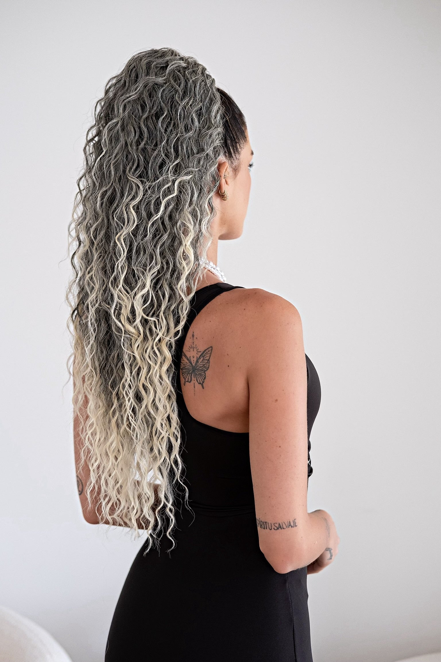 Cola rizada #t1b-613 con cordón negro/platino Degradè