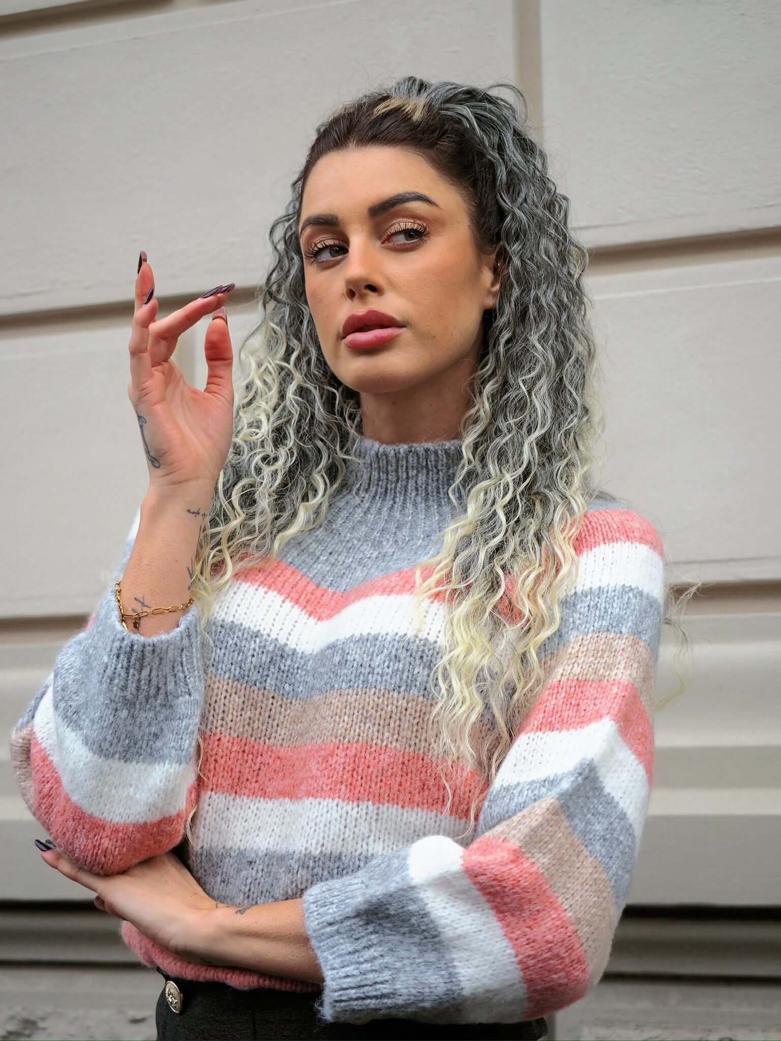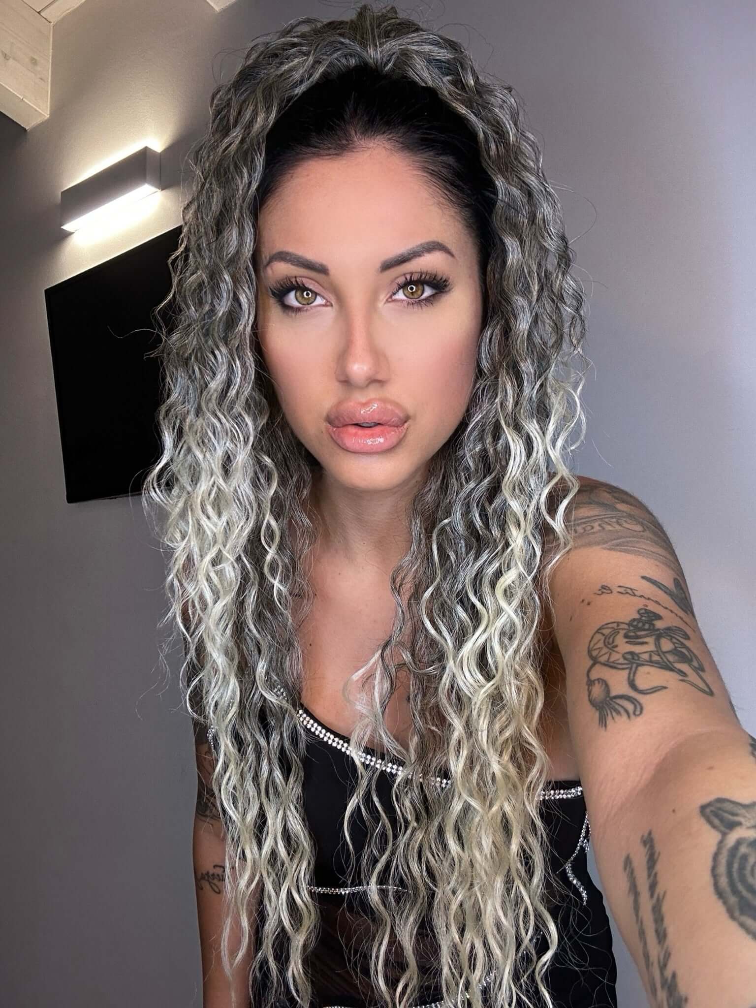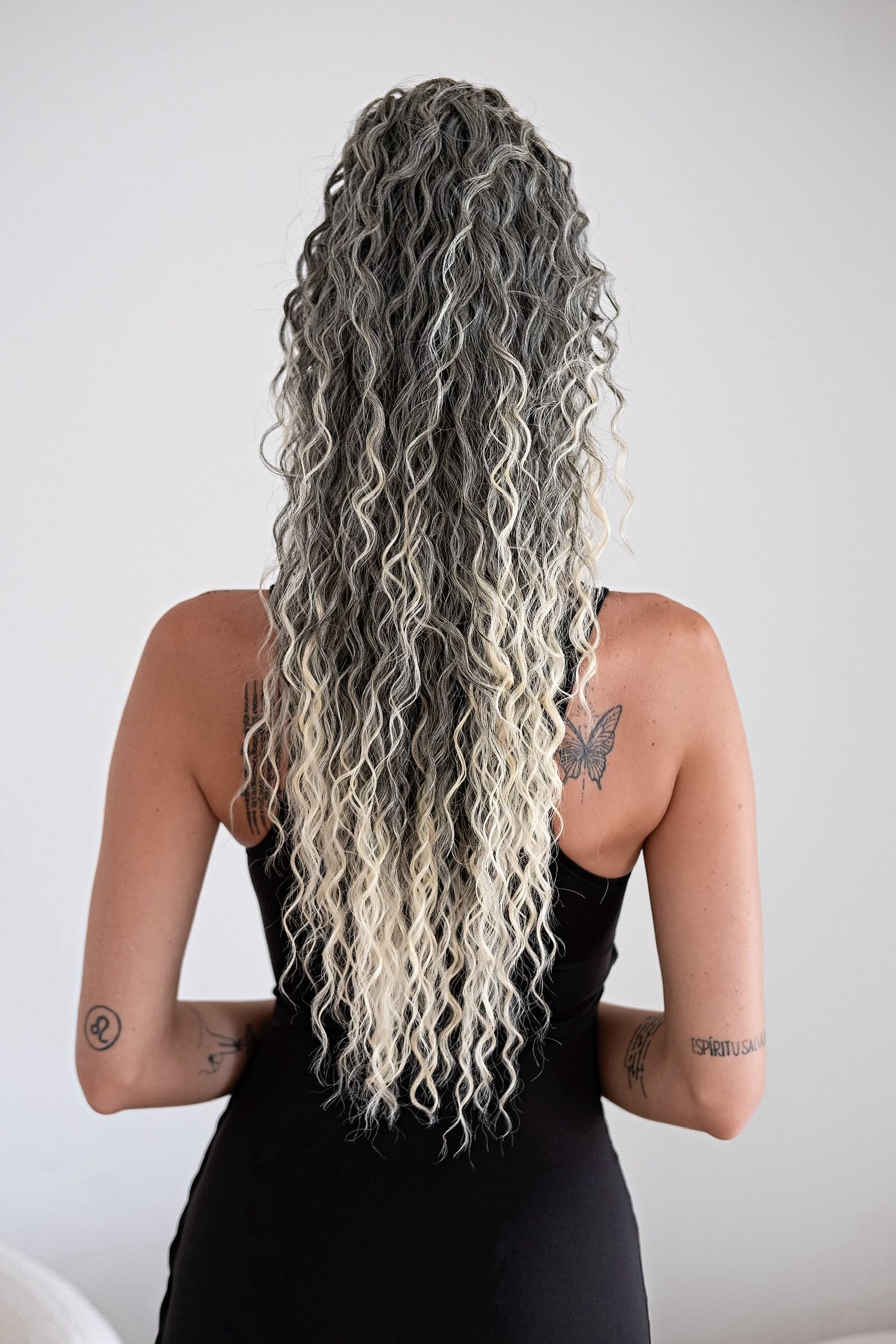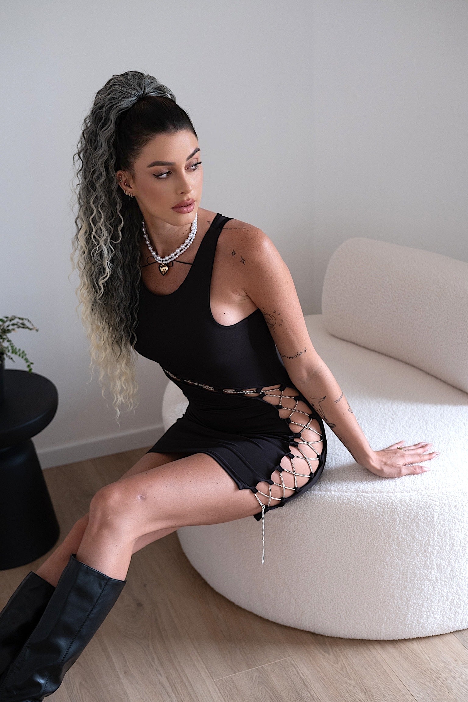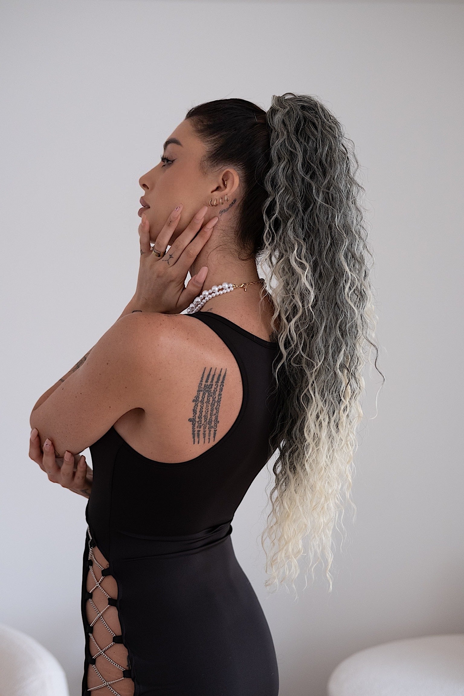 Cola rizada #t1b-613 con cordón negro/platino Degradè