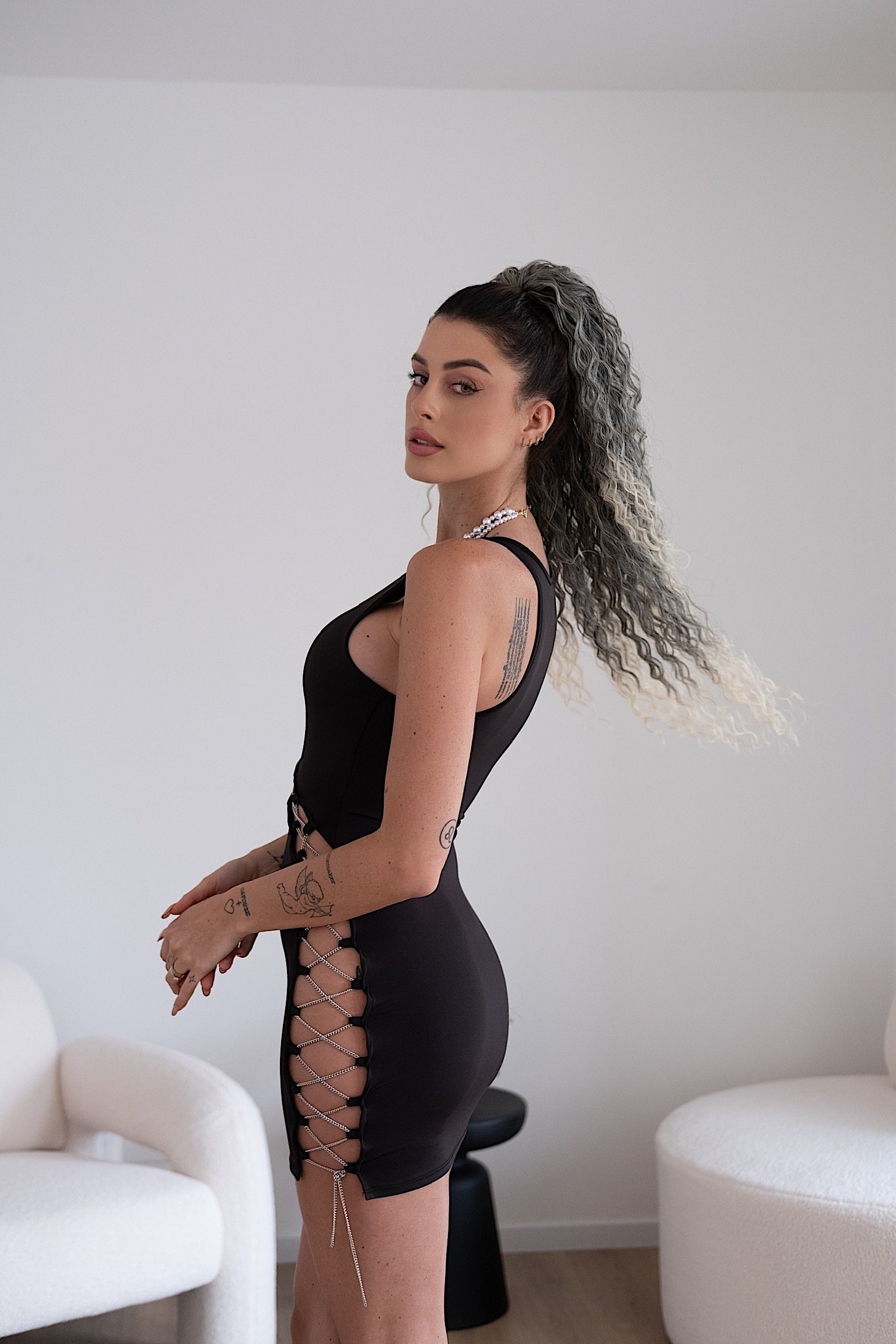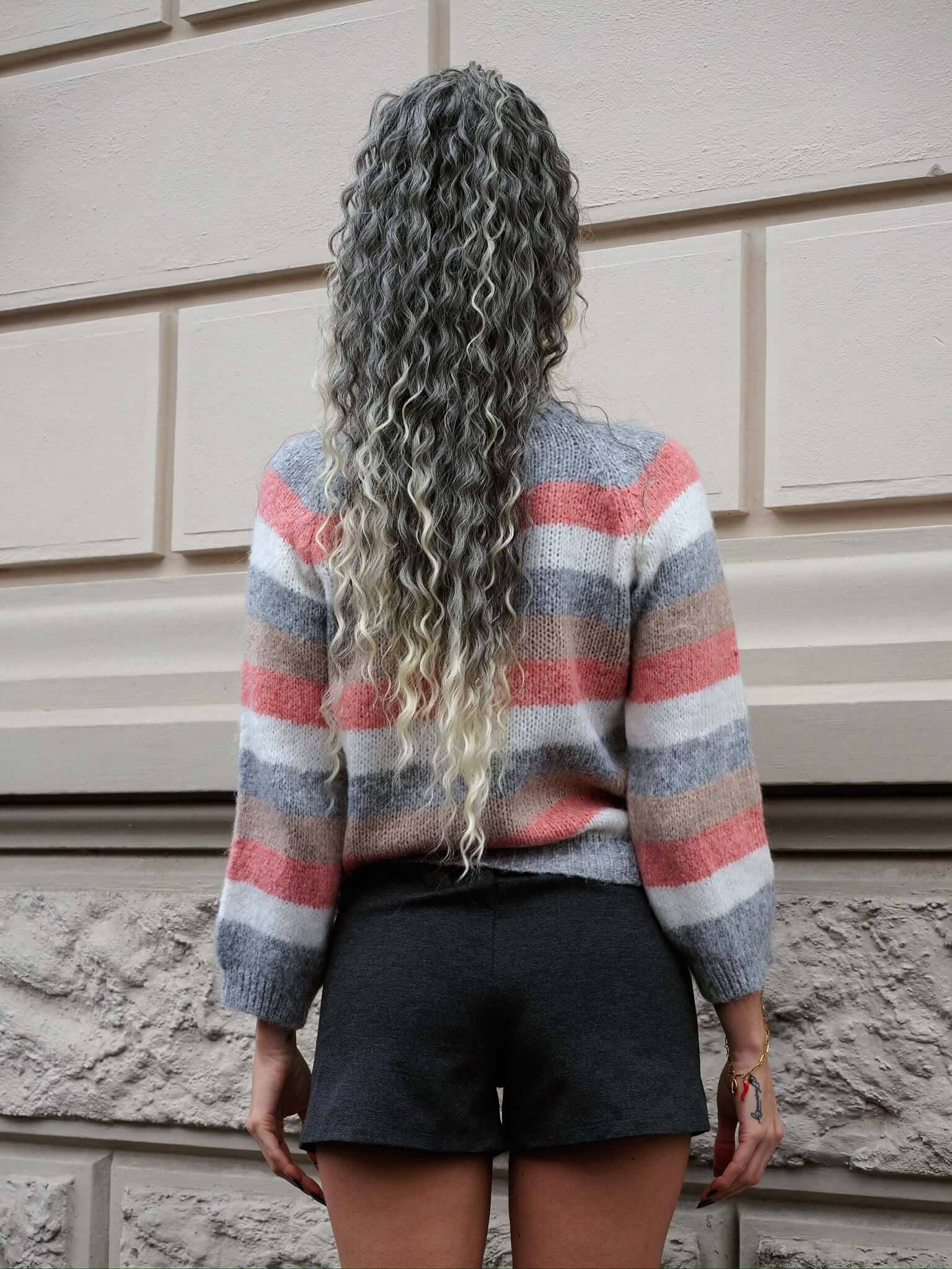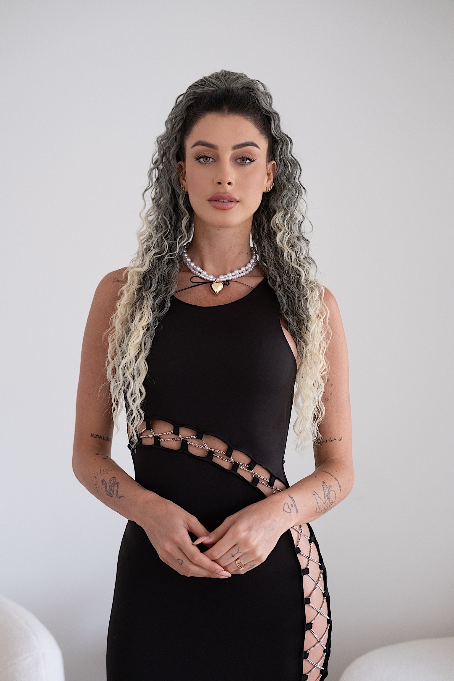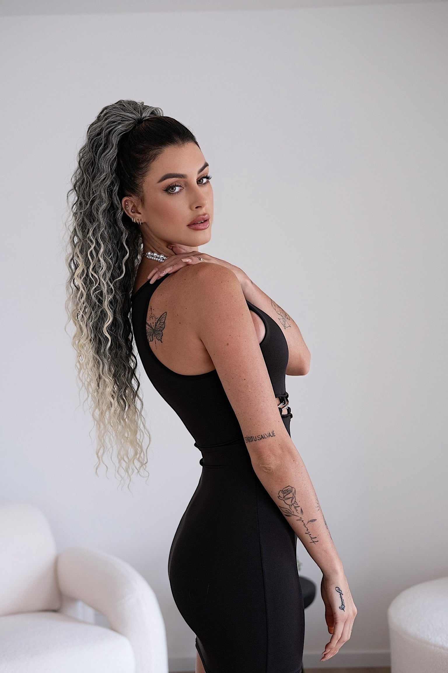 Cola rizada #t1b-613 con cordón negro/platino Degradè