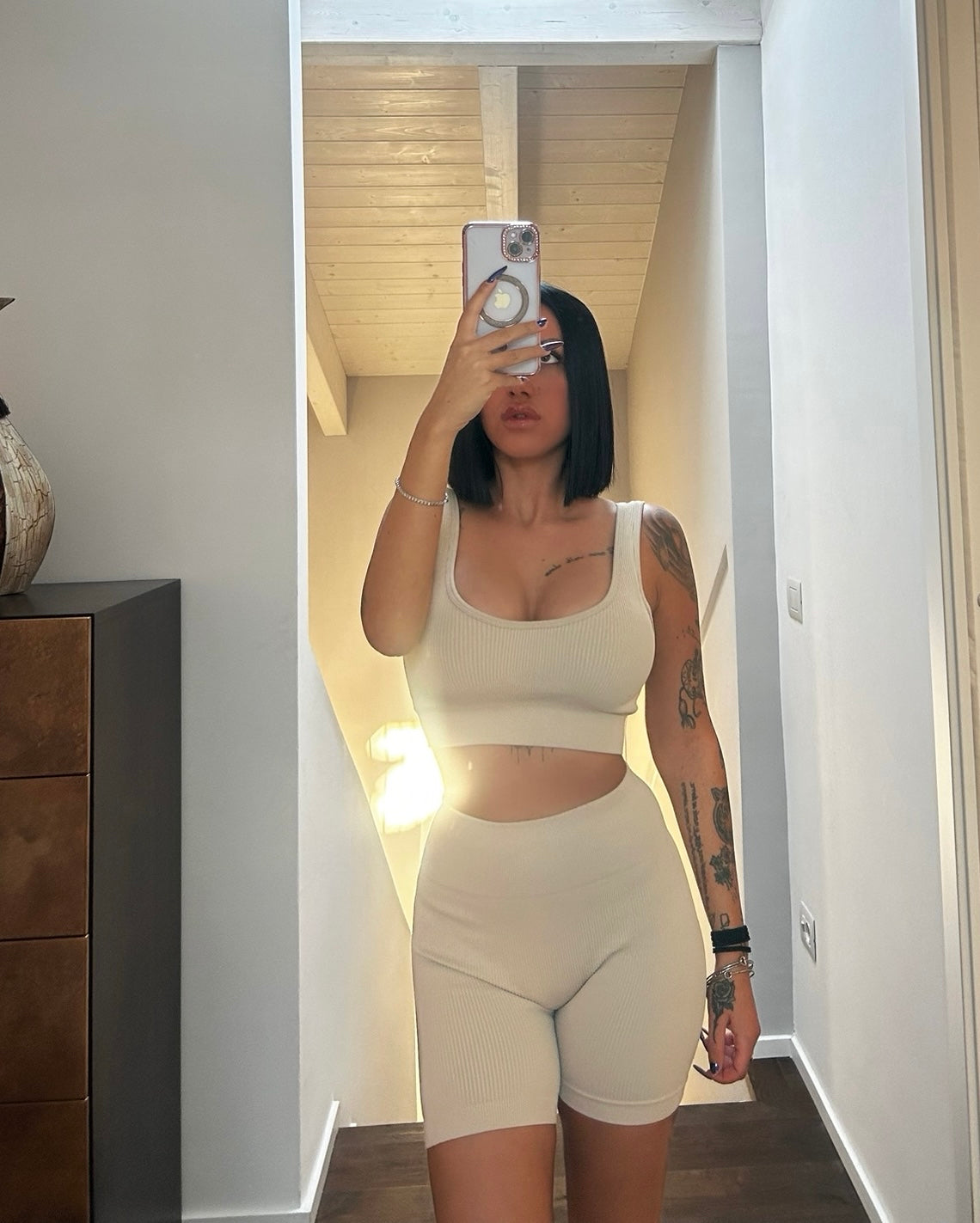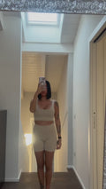 Conjunto fitness top y pantalón corto beige