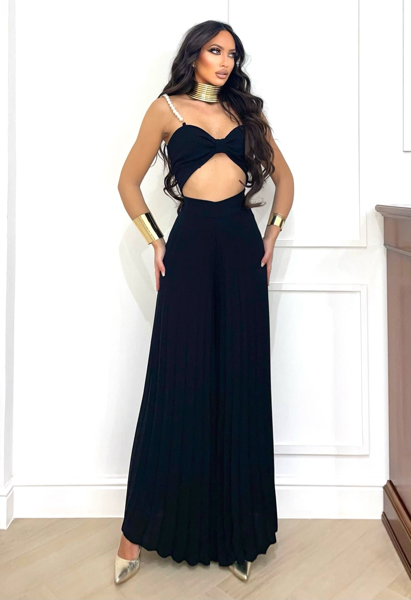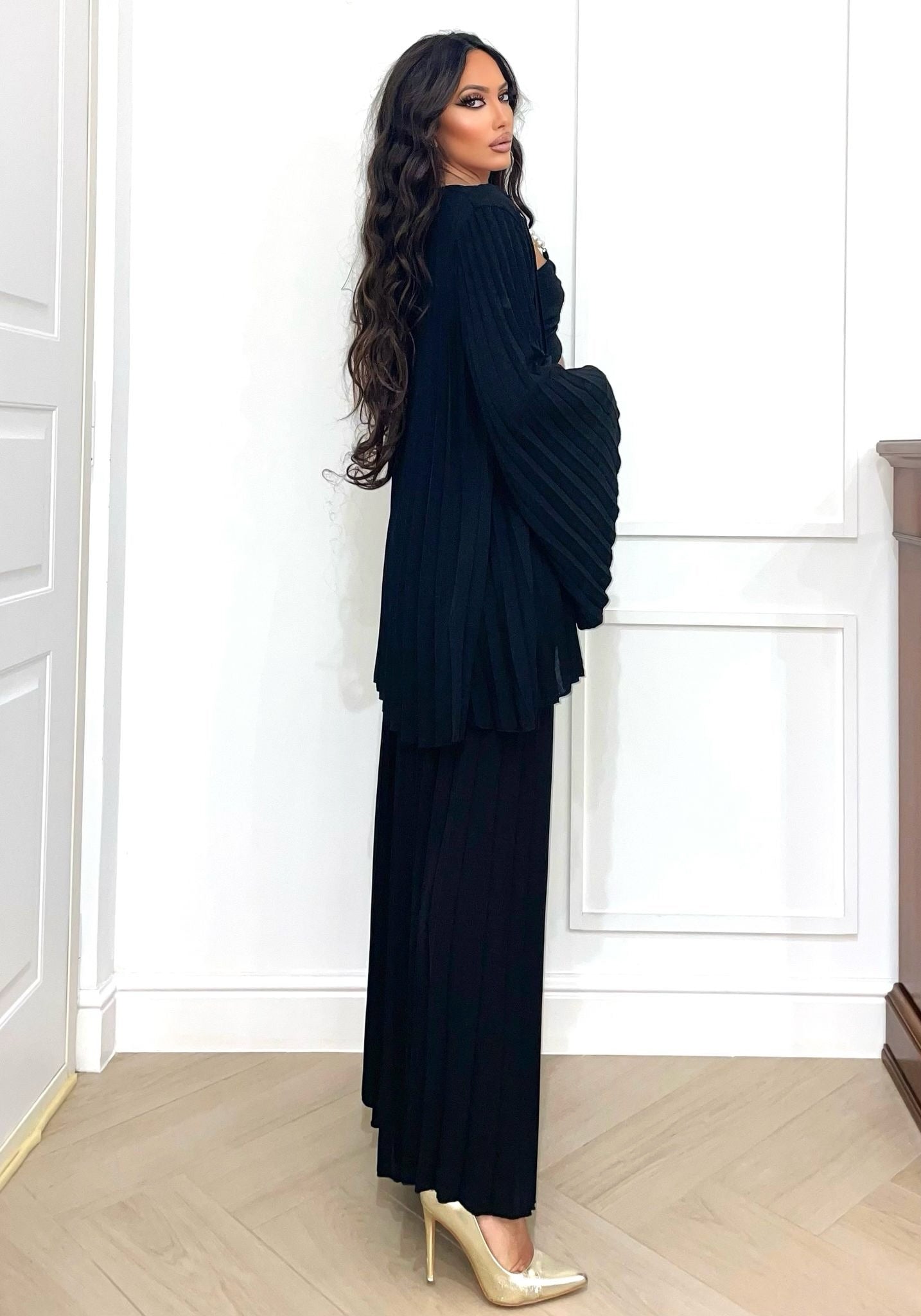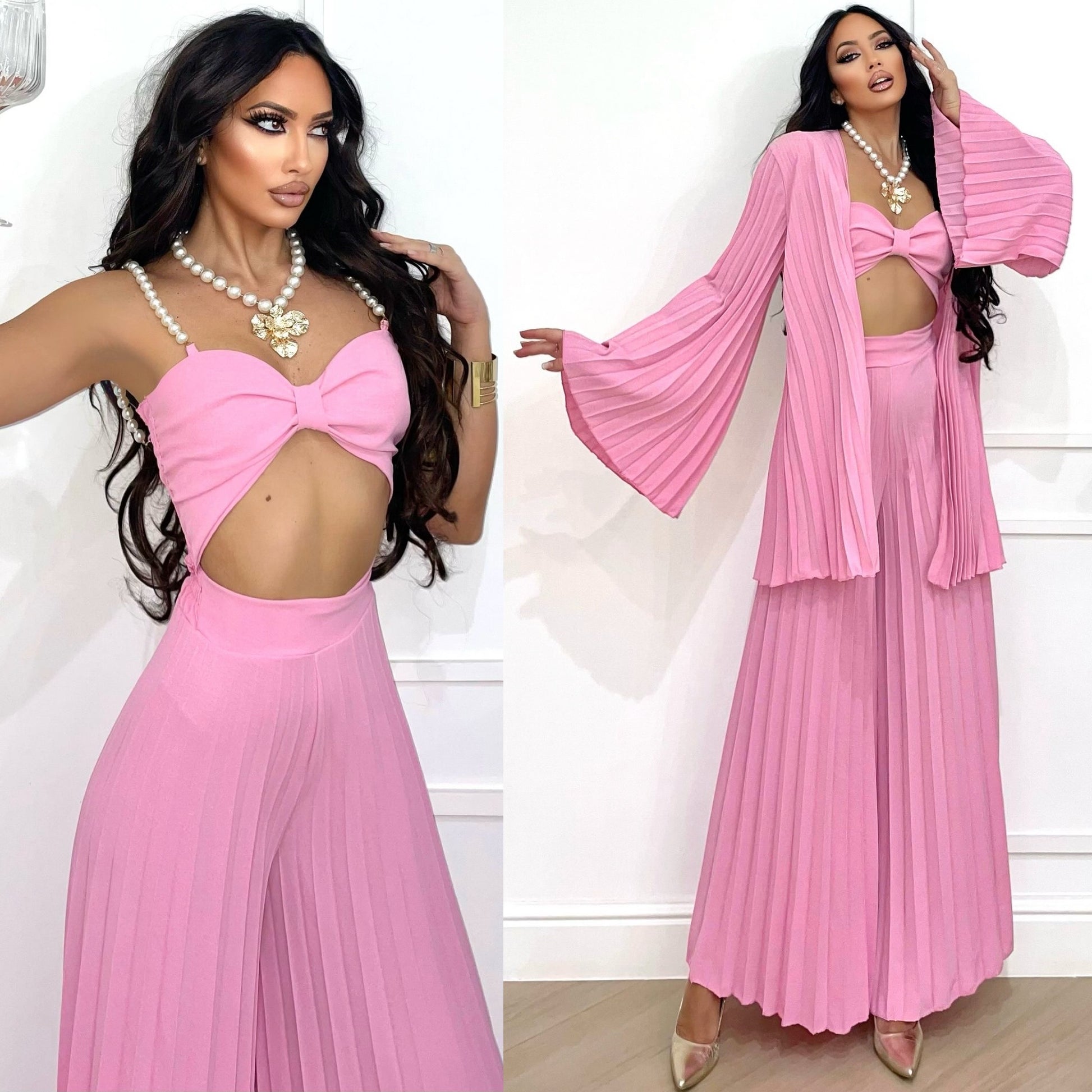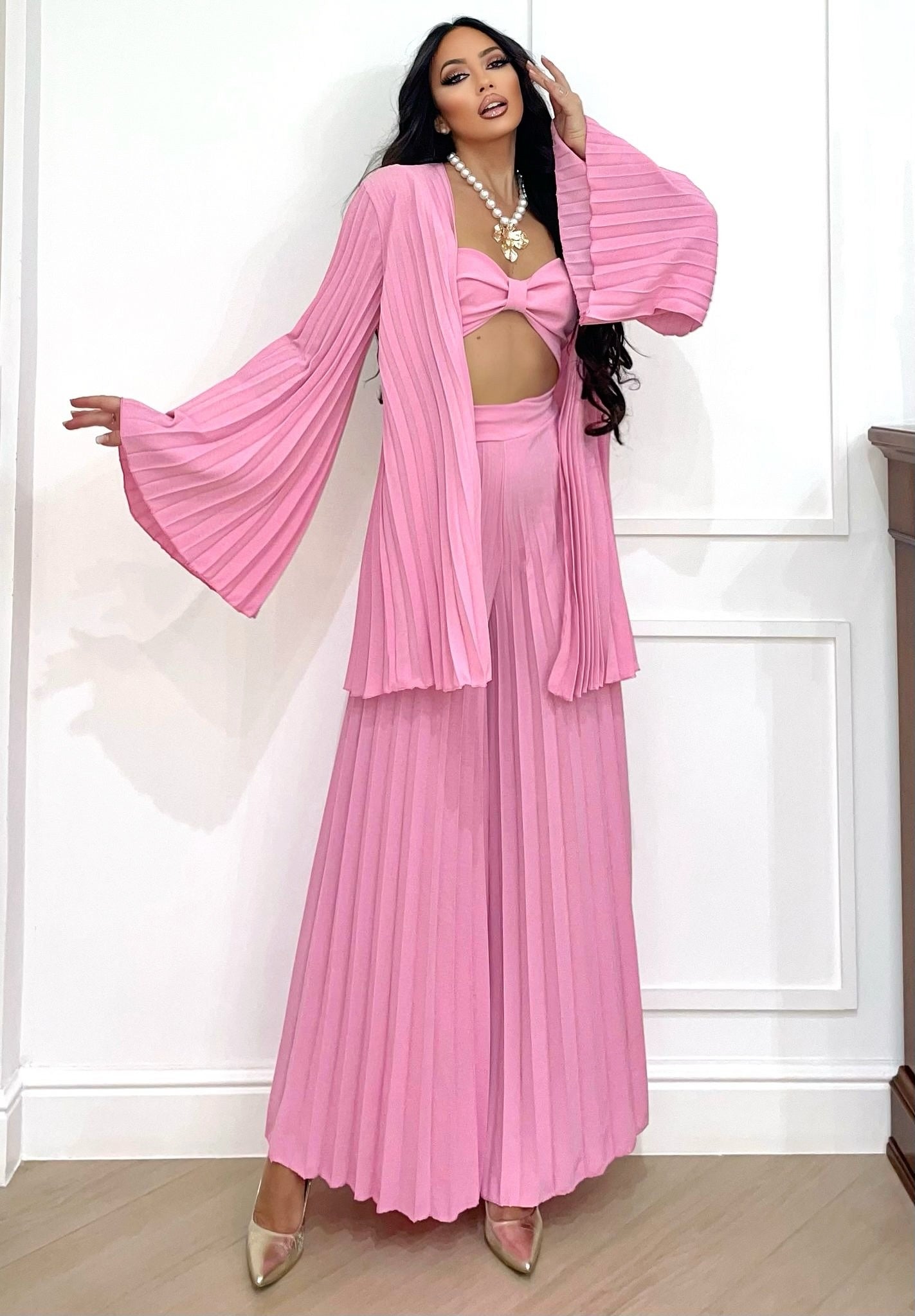 - pantalones acampanados con pliegues elásticos