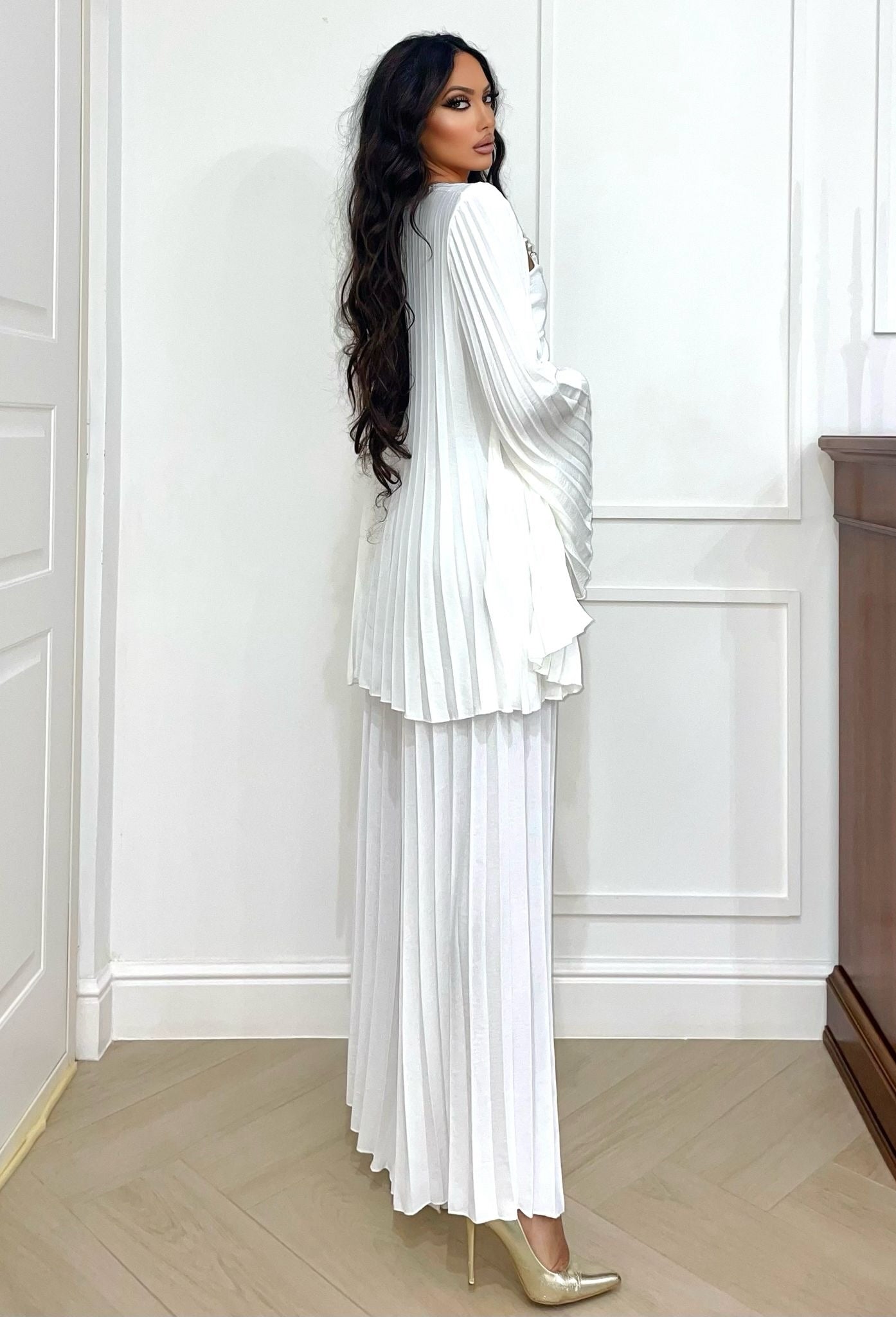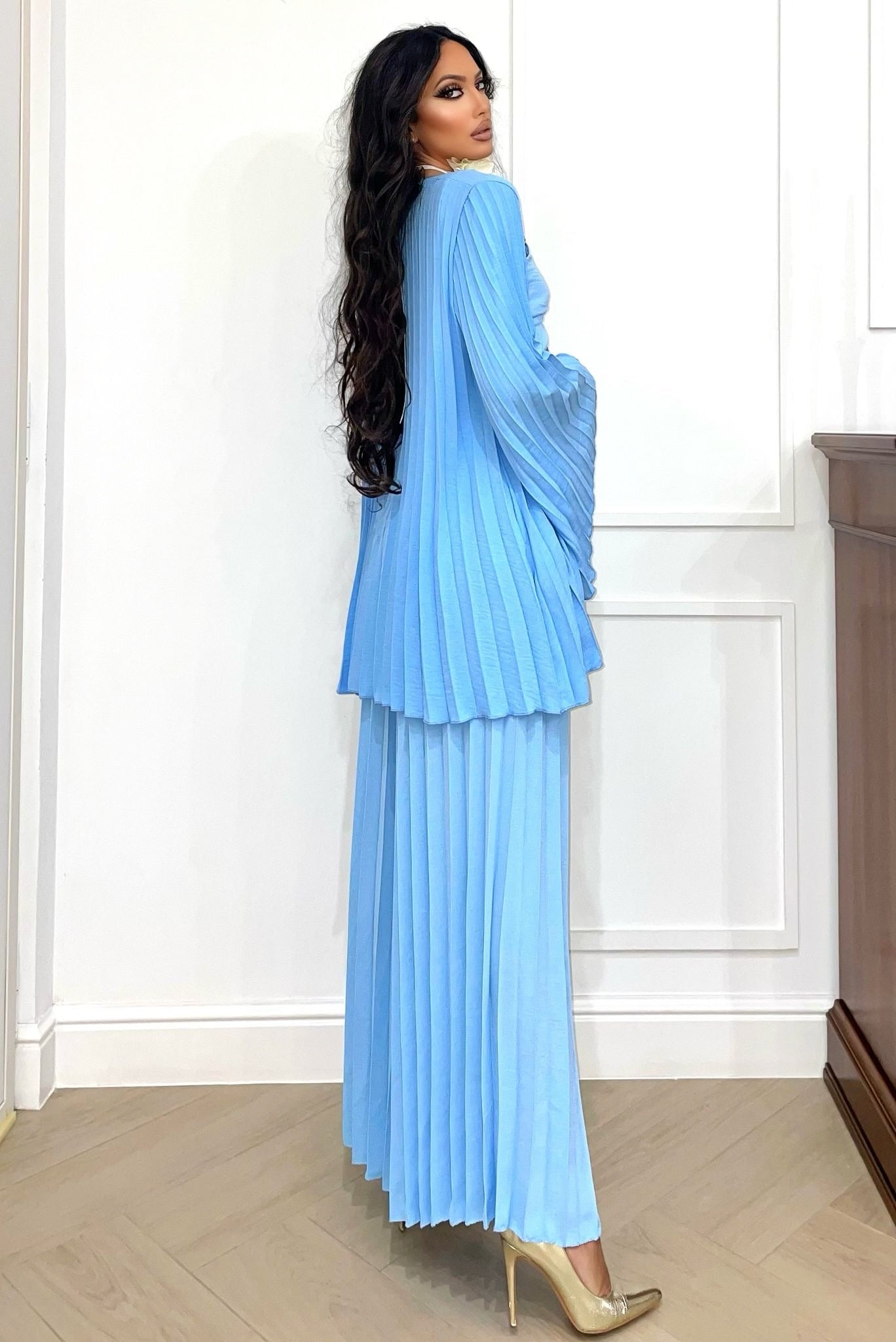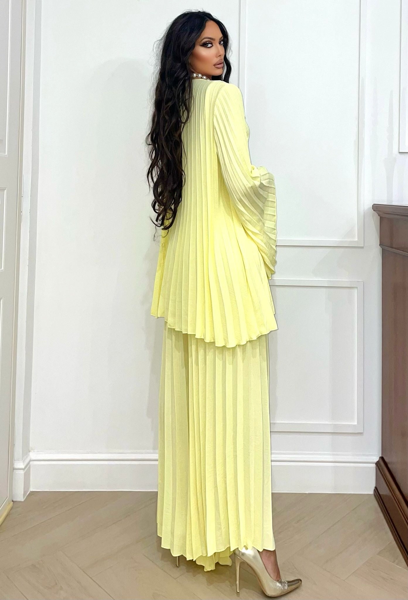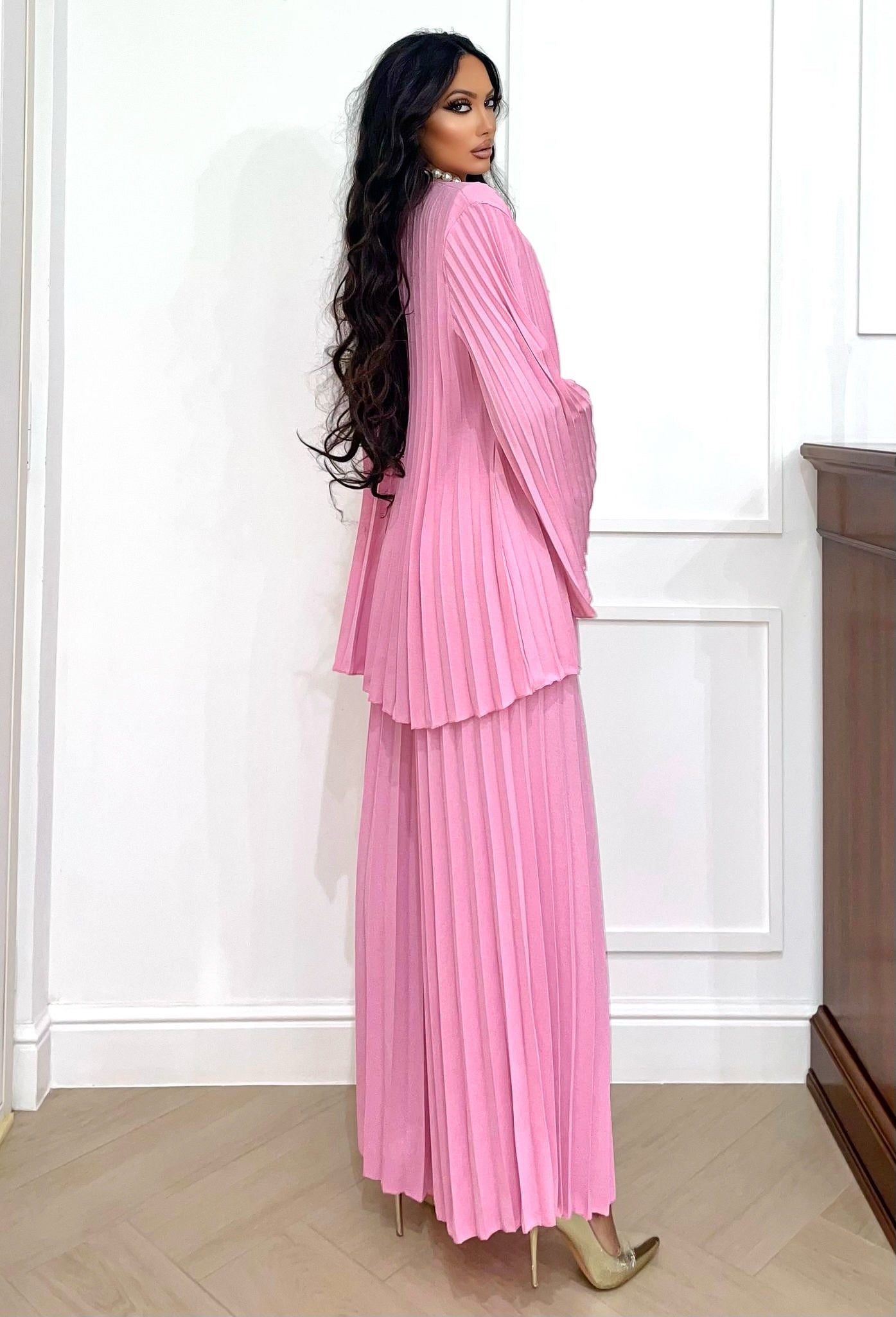 - pantalones acampanados con pliegues elásticos