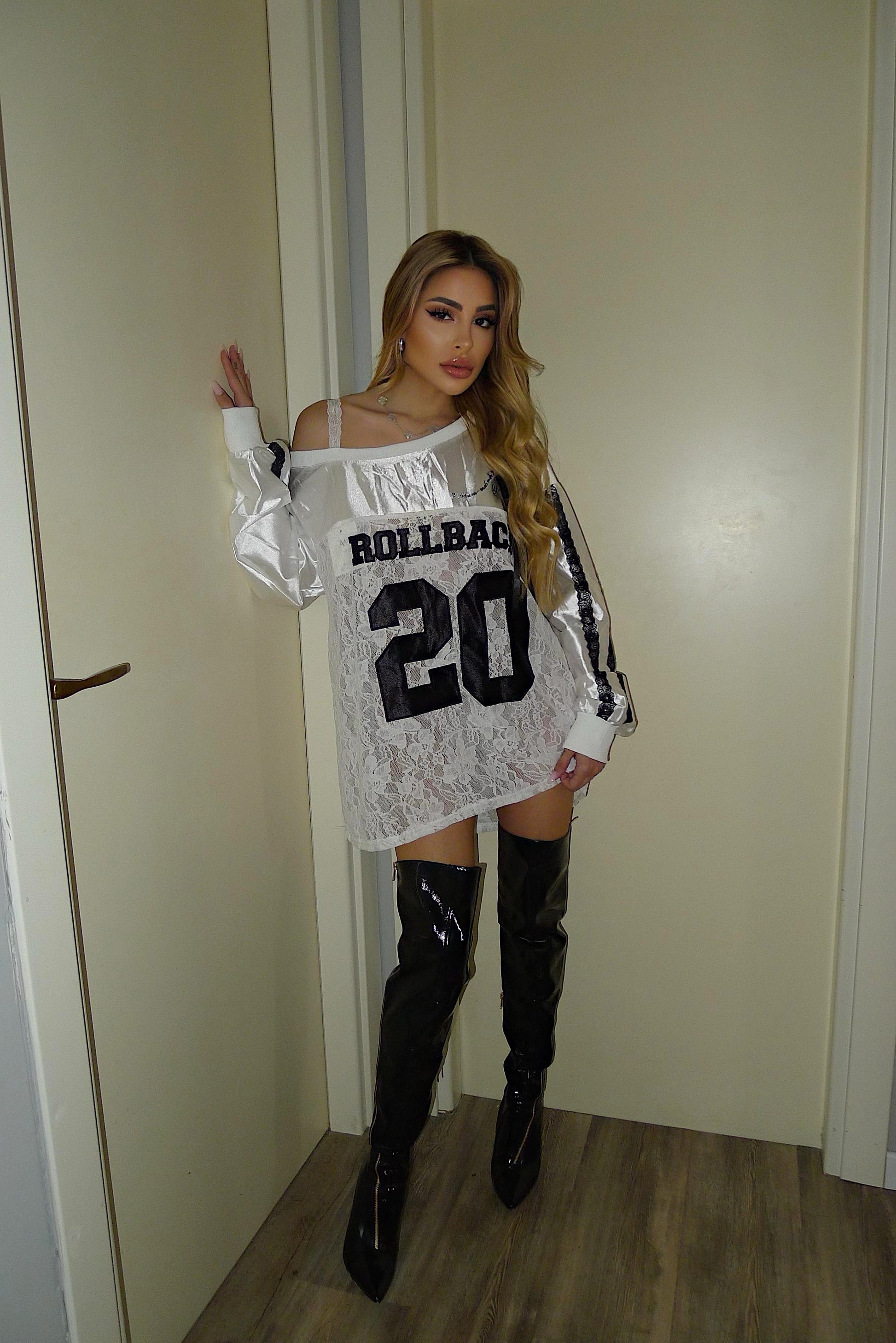 Sudadera de satén con detalle de encaje en la manga, encaje en la parte delantera y trasera con efecto transparente.