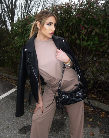 Conjunto coordinado de camisa y pantalón capuchino