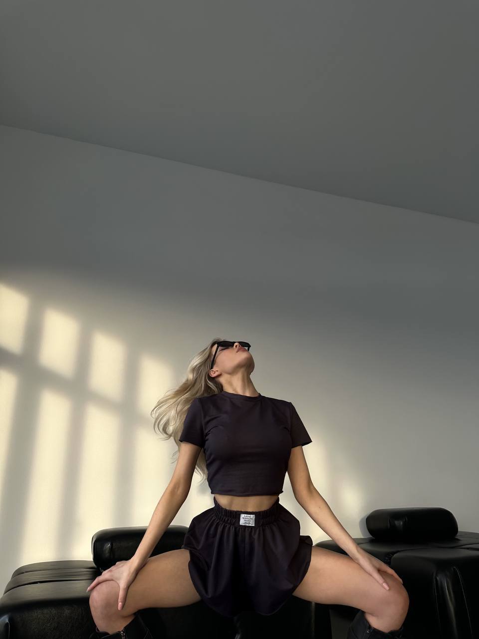 Dos piezas vendidas individualmente en algodón elástico que consisten en camisa de algodón y pantalón corto elástico.