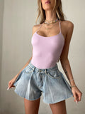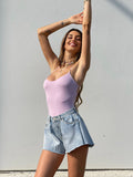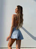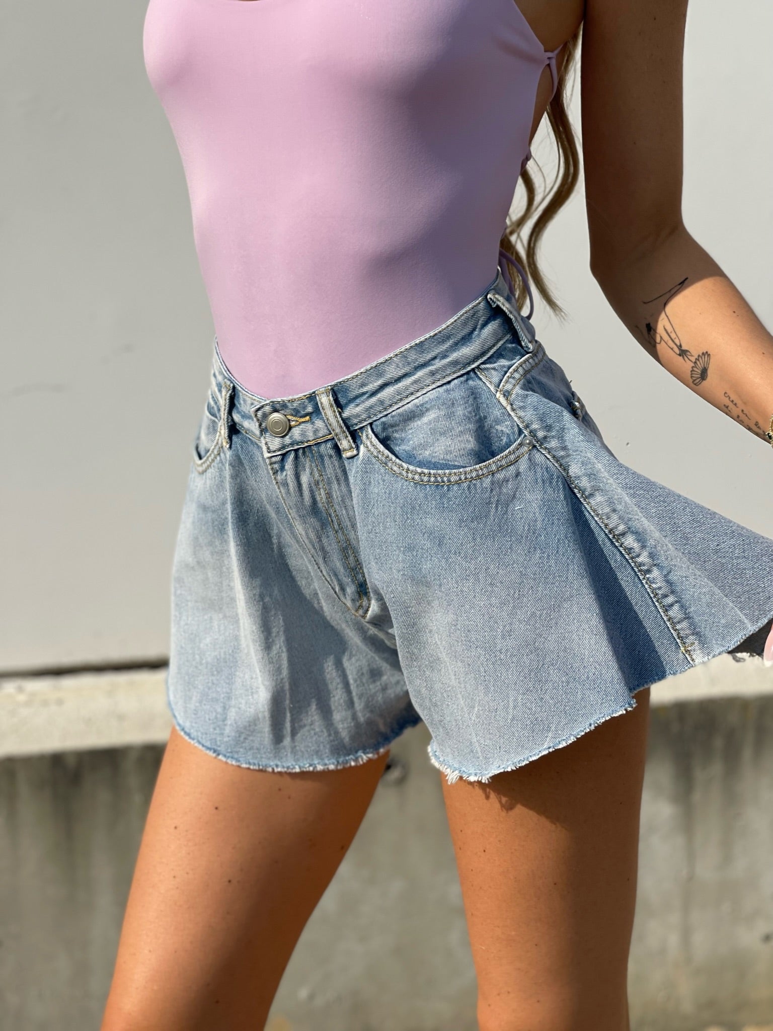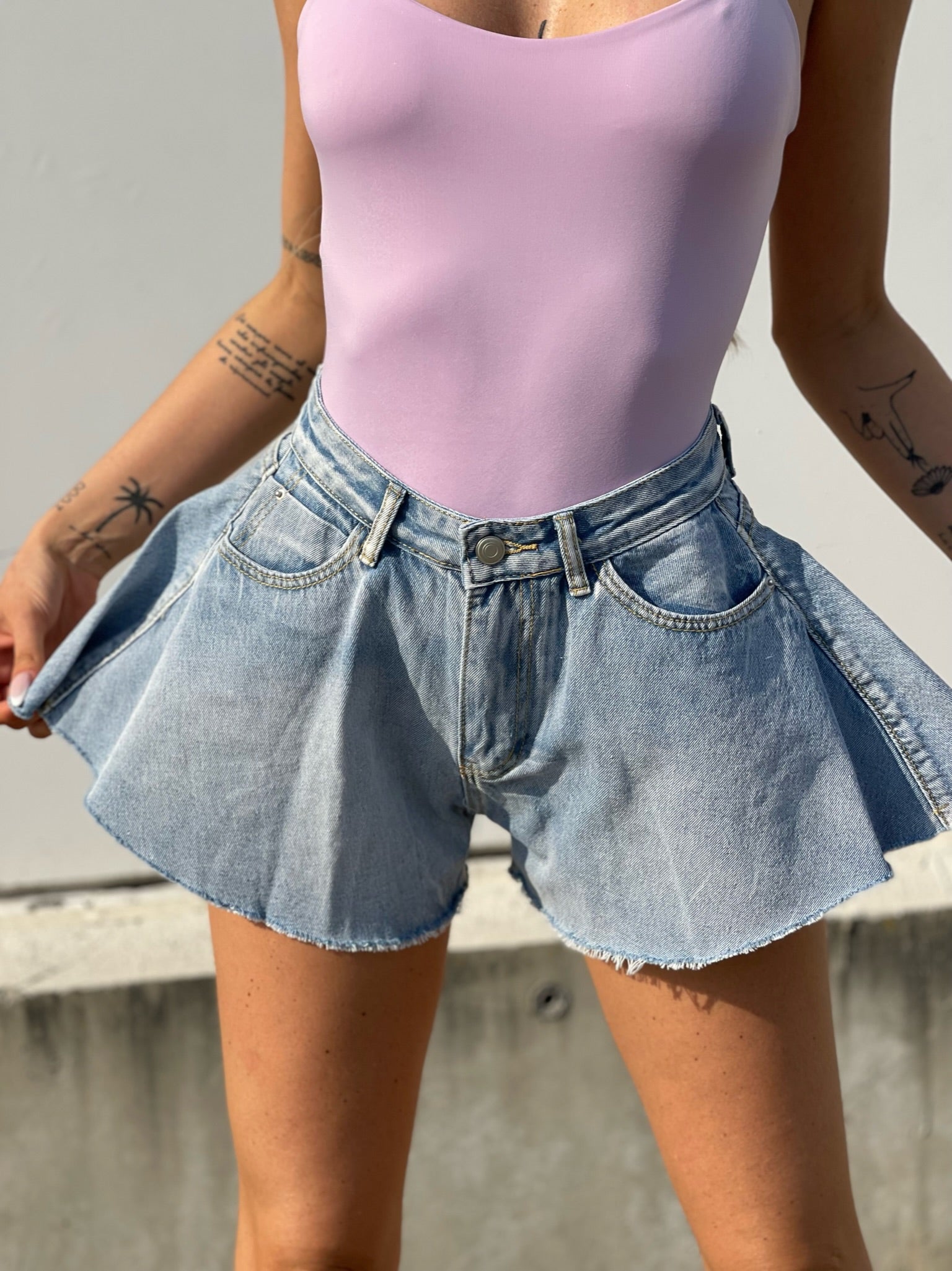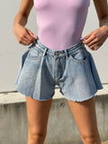 Short vaquero mariposa con cierre de cremallera y botón. no estirar