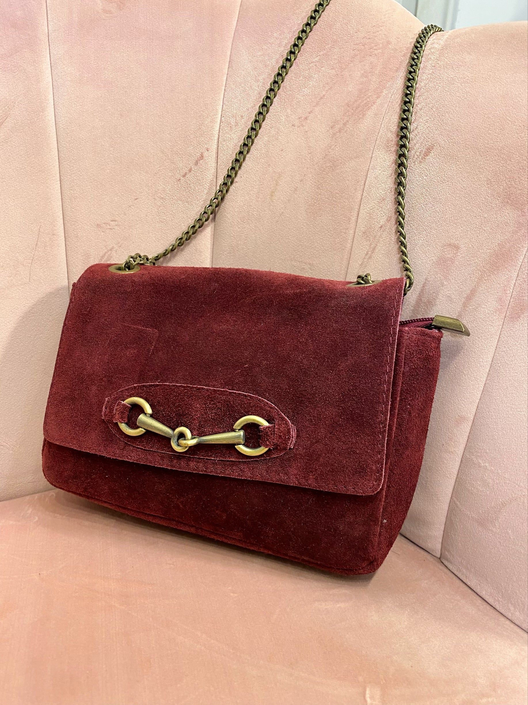 Bolso en piel genuina con detalles dorados, portátil tanto al hombro como al hombro