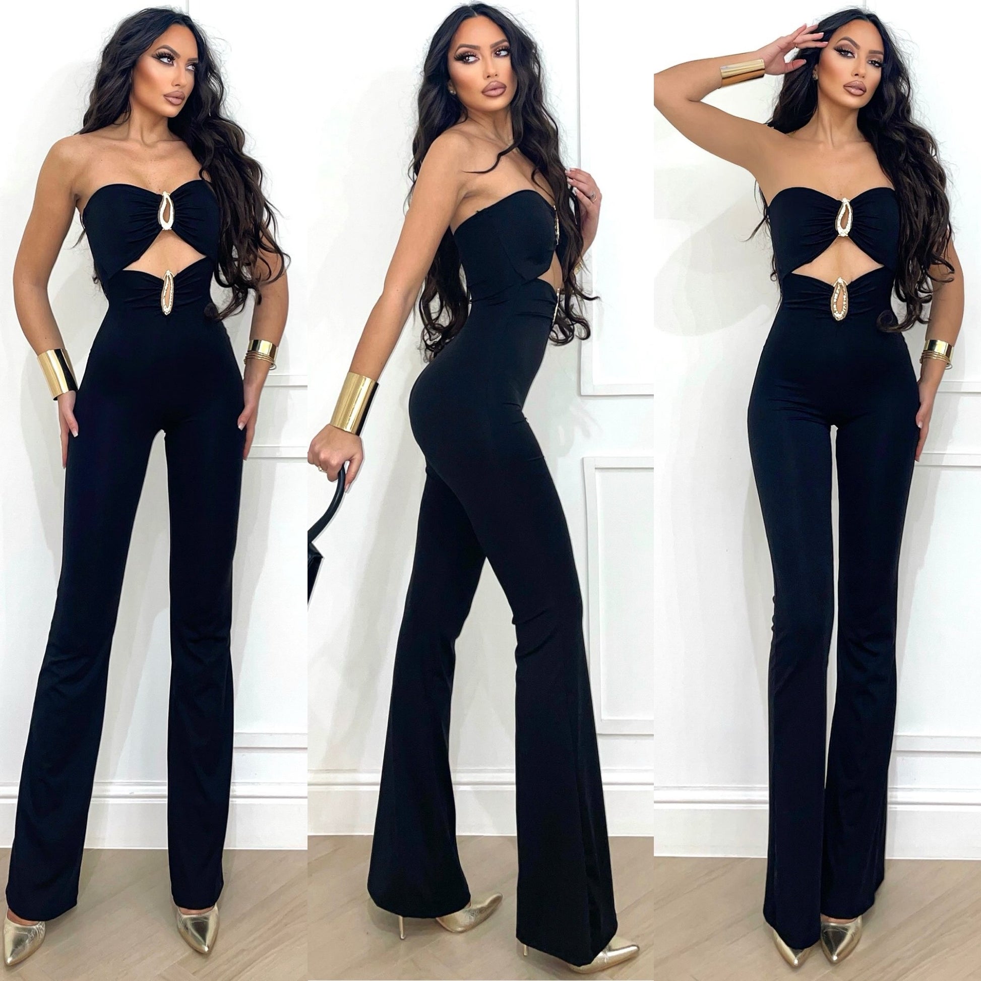 Body de lycra elástica con copas y joyas en la parte delantera.