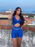 Mono entallado y elástico de lycra con detalle de nudo en la parte delantera.