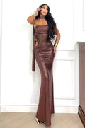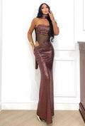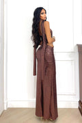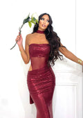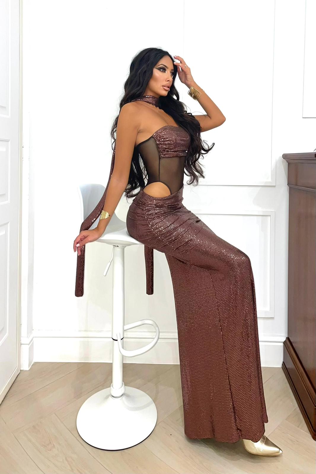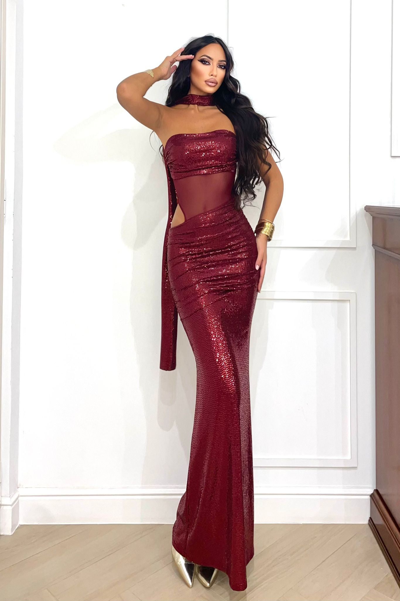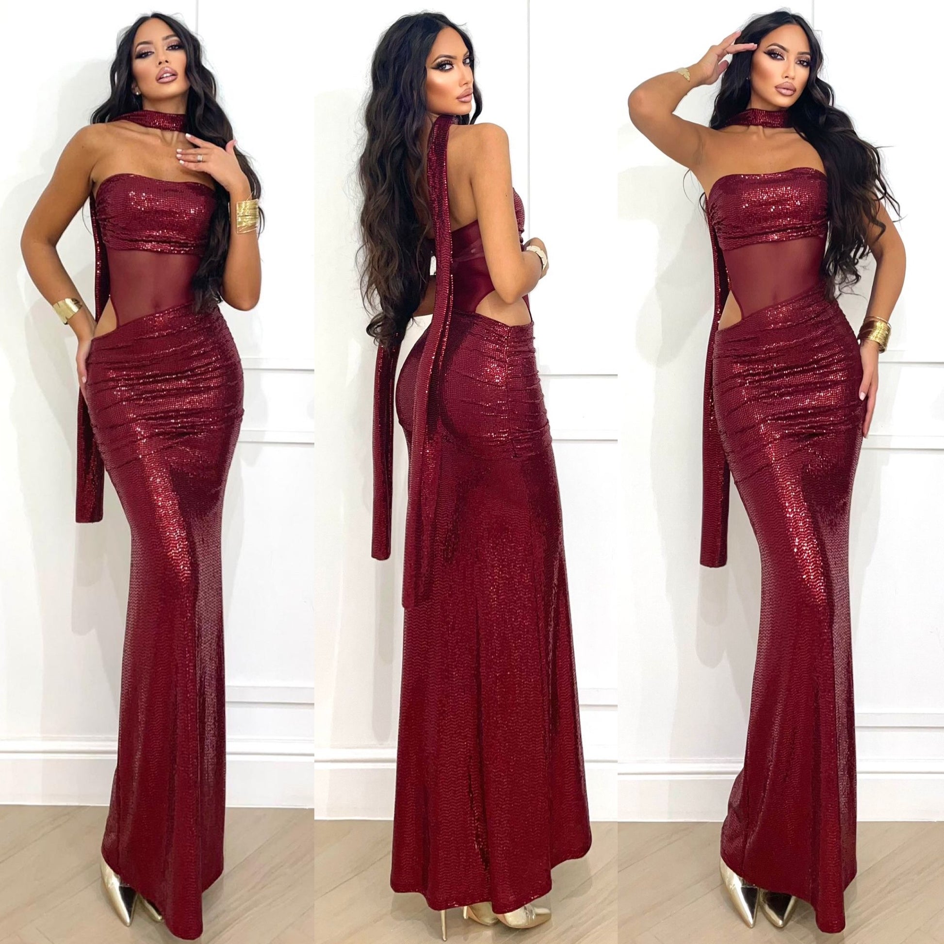 Lasciati conquistare dal fascino magnetico dello Starlight Dress, un abito lungo interamente ricoperto di paillettes che illumina ogni tuo movimento.