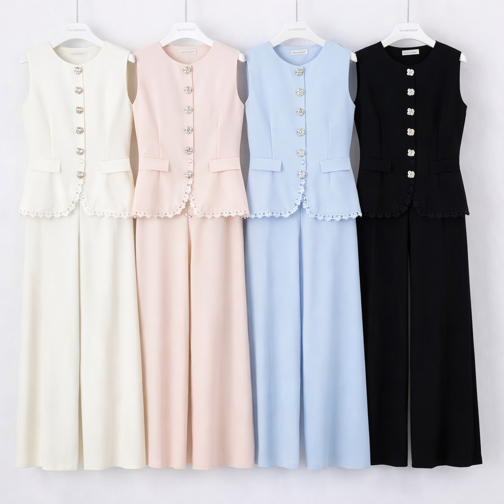 Il design senza maniche con bottoni gioiello e dettagli in pizzo dona un tocco romantico e sofisticato, rendendolo ideale per eventi, cerimonie, aperitivi o look da sera. Il tessuto fluido e leggero garantisce comfort e movimento, mantenendo uno stile sempre impeccabile.