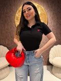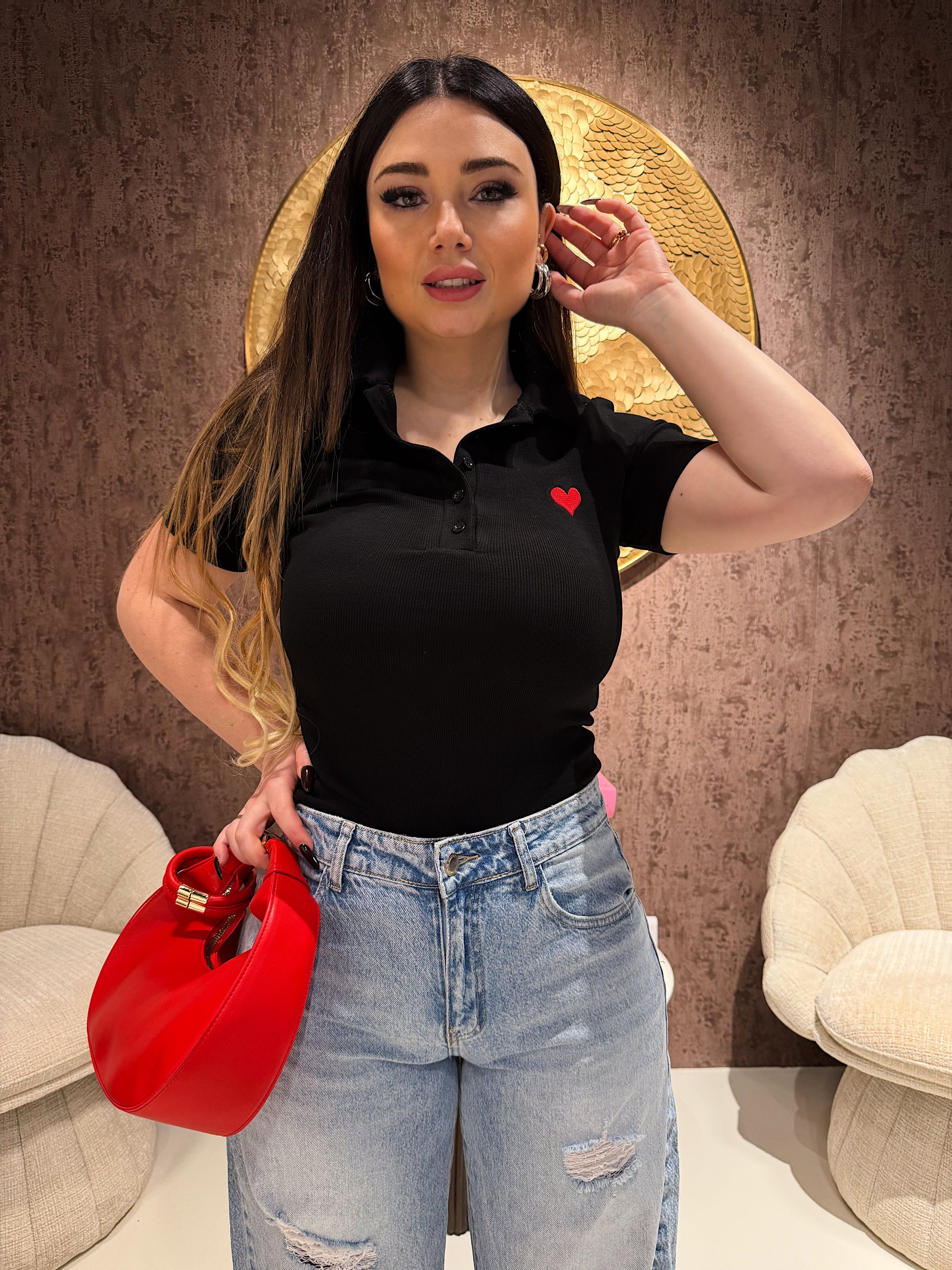 La polo in cotone con cuore ricamato è realizzata in 100% cotone di alta qualità, garantendo comfort e traspirabilità. Il design con cuore ricamato offre un tocco distintivo, rendendo questo capo adatto per occasioni casual e di lavoro. La sua composizione garantisce una sensazione morbida sulla pelle e una buona durata nel tempo.