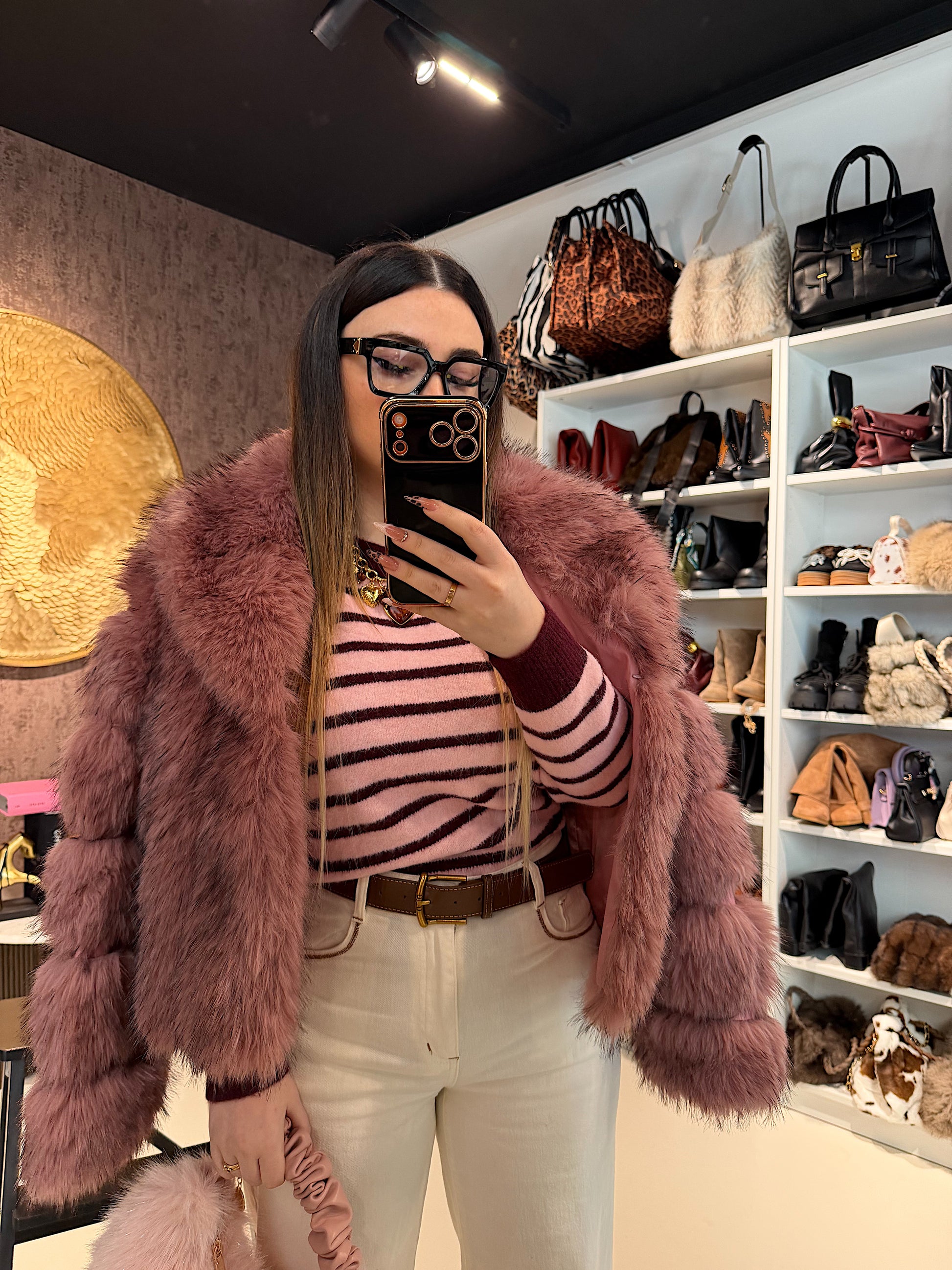 Un capo sofisticato e avvolgente, perfetto per le giornate più fredde e per le occasioni speciali. Questa giacca in eco-pelliccia morbidissima offre un effetto elegante e glamour senza rinunciare al comfort.