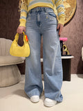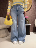 I Jeans Wide Leg Flower Strass sono il capo must have della stagione per un look glamour, femminile e super trendy. Realizzati in denim chiaro con vestibilità wide leg, slanciano la figura e valorizzano la silhouette grazie alla vita alta e alla gamba ampia.