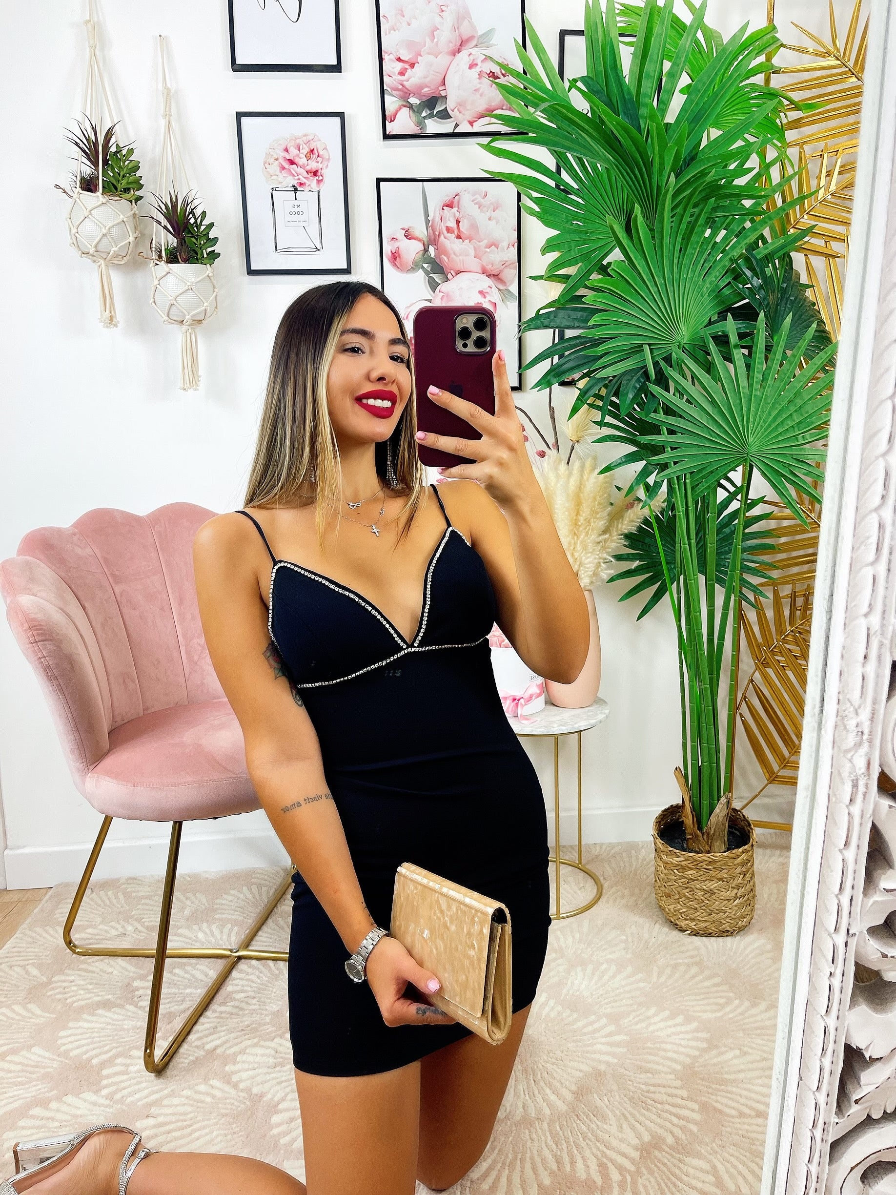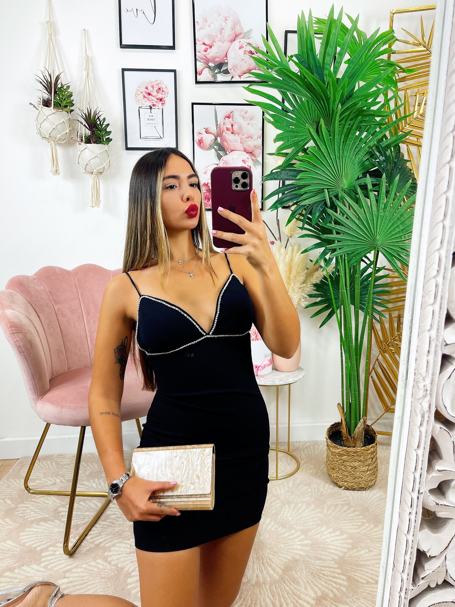 Sukienka na ramiączkach z kryształkami, zapięciem z tyłu i elastycznymi ramiączkami, jest to elastyczna i wygodna tkanina.