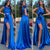 Abito blu elettrico con fiocco e maxi gonna