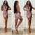 Różowa cekinowa sukienka z dekoltem w serek