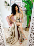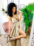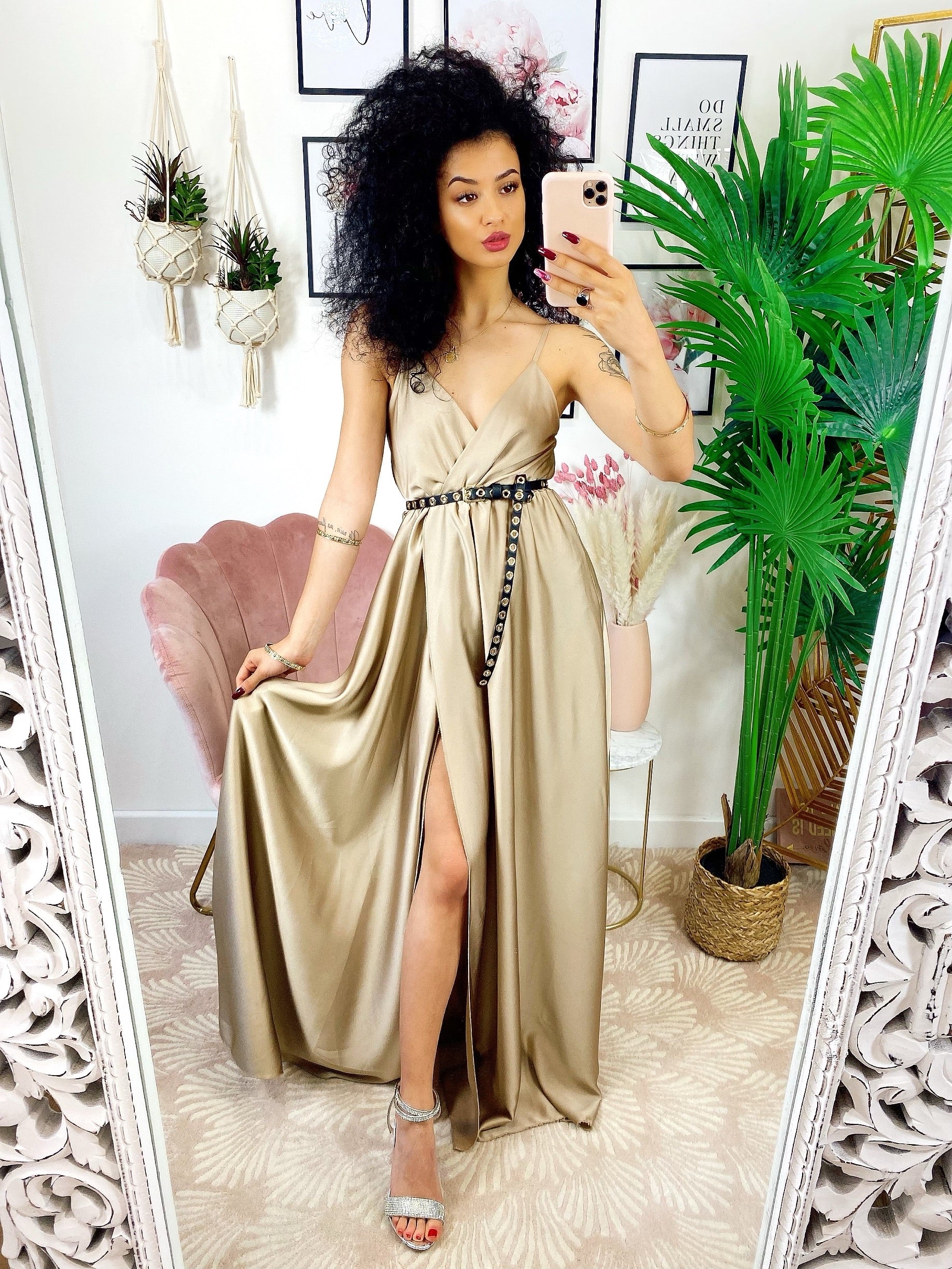 Satynowa sukienka z wysokiej jakości piaskowym rozcięciem maxi. Fantastyczna bardzo długa sukienka do noszenia z ładnym obcasem na najbardziej efektowne wieczory. Wydobądź swoją zmysłowość i pragnienie bycia kobietą, będziesz najbardziej kochaną wieczoru!!