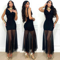 Abito aderente lungo con arricciatura senza coppe con gonna in tulle. Tessuto elasticizzato