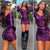 Fioletowa sukienka z błyszczącej elastycznej tkaniny z efektem cekinów. Dekolt w łódkę